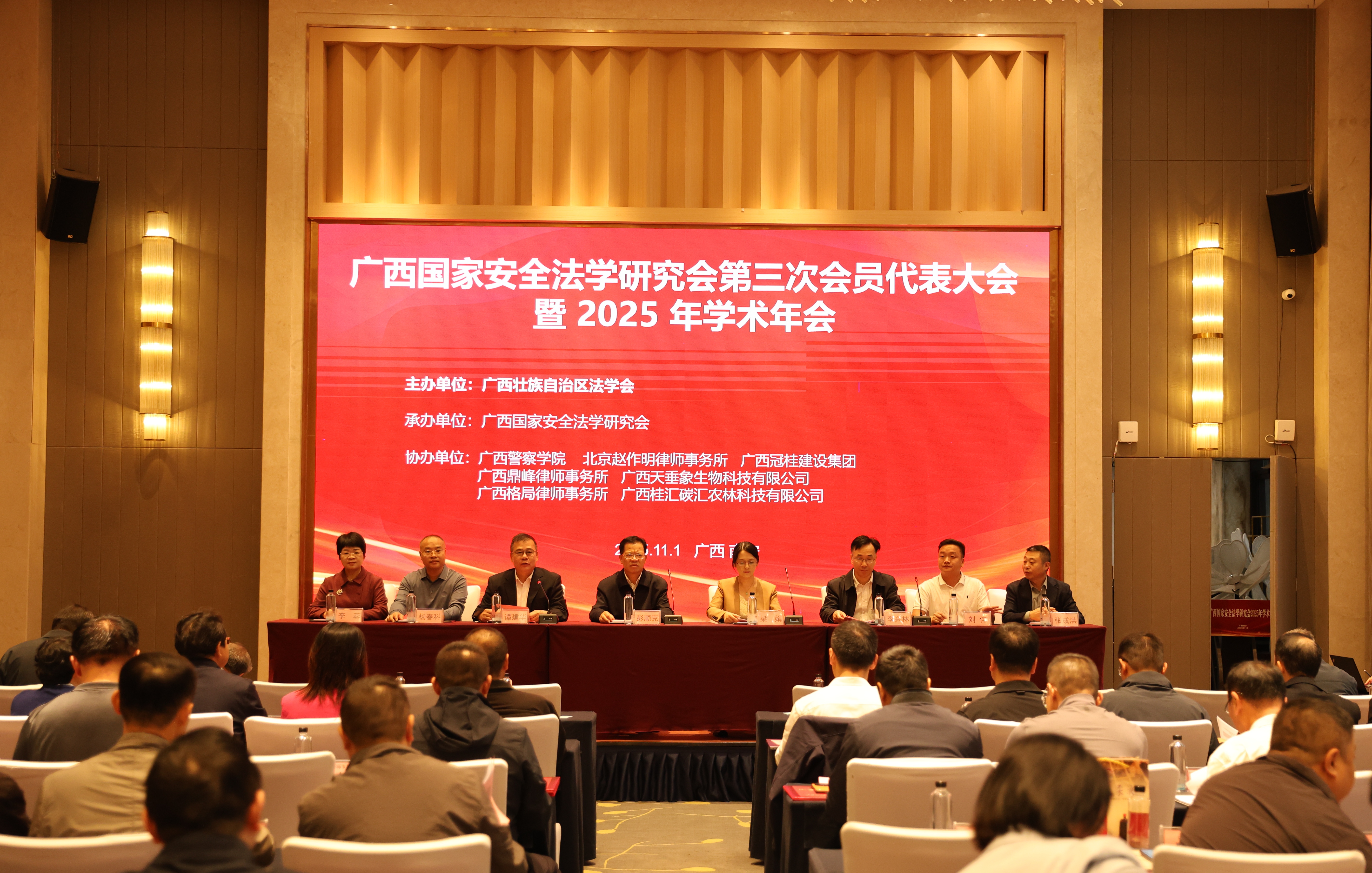 11月1日,由自治区法学会主办、我校协办的广西国家安全法学研究会第三次会员代表大会暨2025年学术年会在南宁召开,学校党委书记、自治区法学会副会长彭顺克出席会议并致辞。