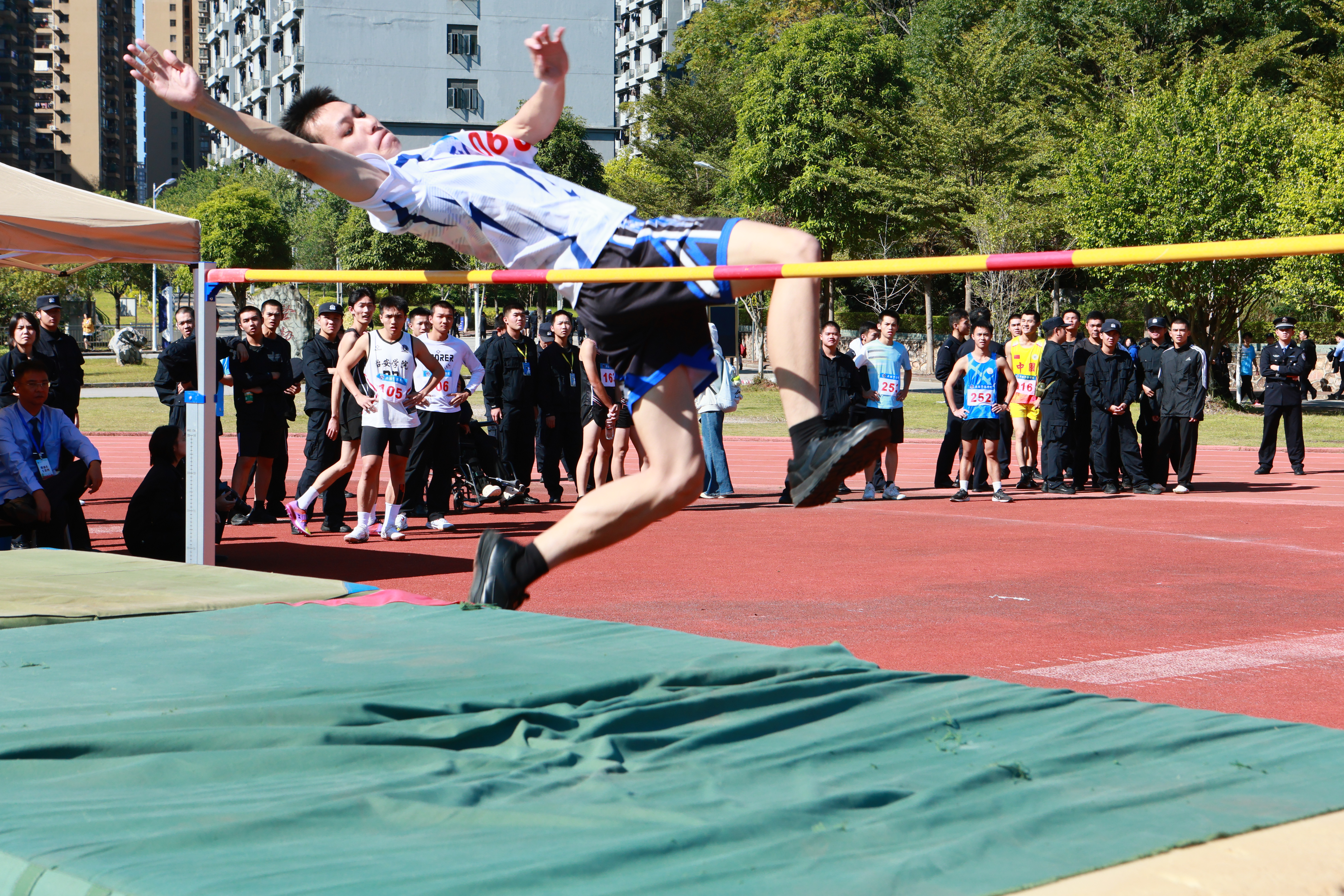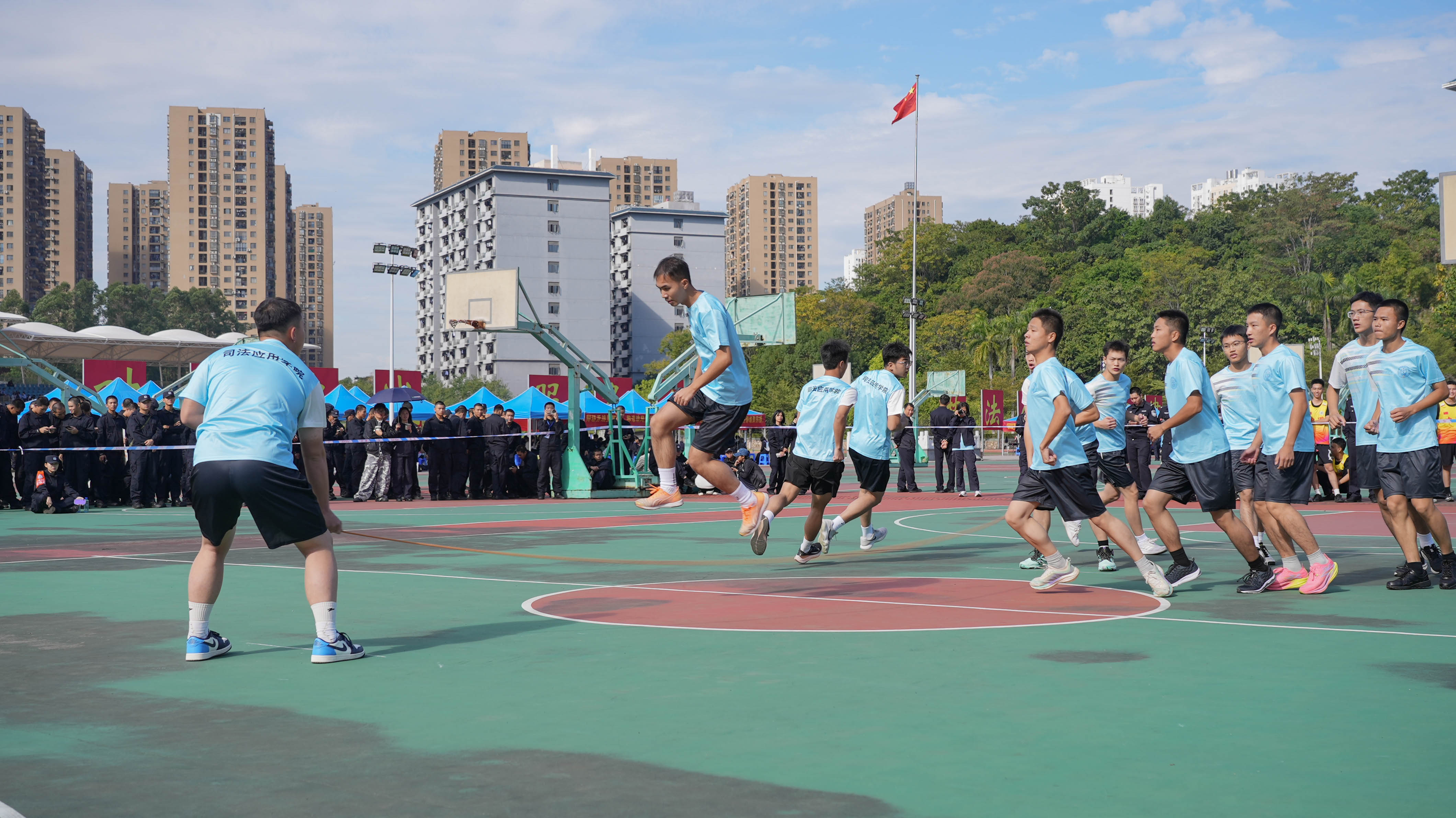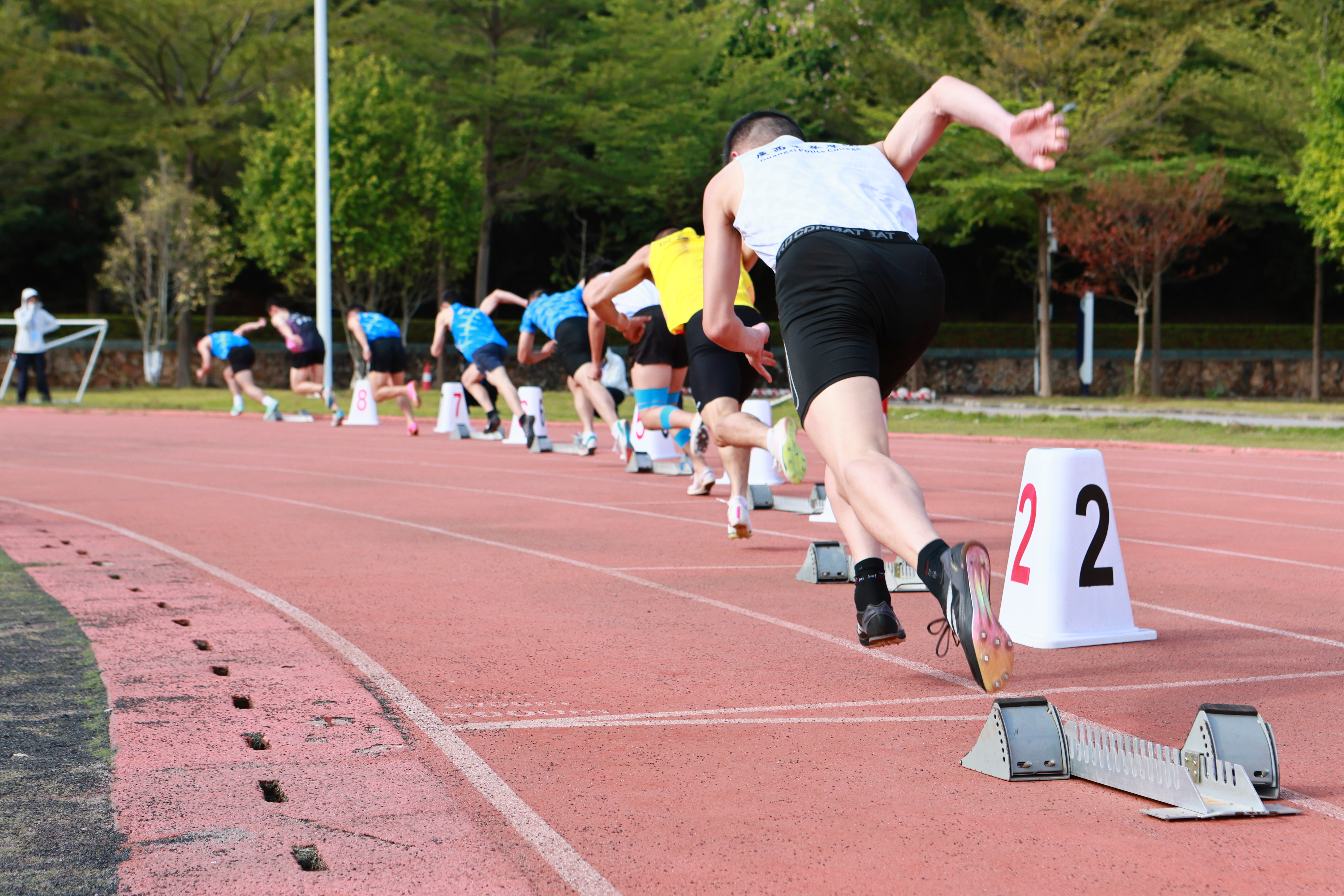 学生组赛事共设置37个小项,赛场之上,全体运动员奋勇争先、捷报频传,多项校运会纪录被成功刷新:治安学院邓晨纬、吴广硕,司法应用学院刘洋光打破学校男子1000米的纪录;邓晨纬、刘洋光同时还打破了学校男子3000米的纪录;司法应用学院杨翠萍打破学校女子3000米的纪录;信息技术学院潘浩琦打破学校男子400米纪录。在团体项目中,侦查学院打破女子鱼贯跳绳项目纪录,公共管理学院和司法应用学院打破混合16×60迎面接力项目纪录。