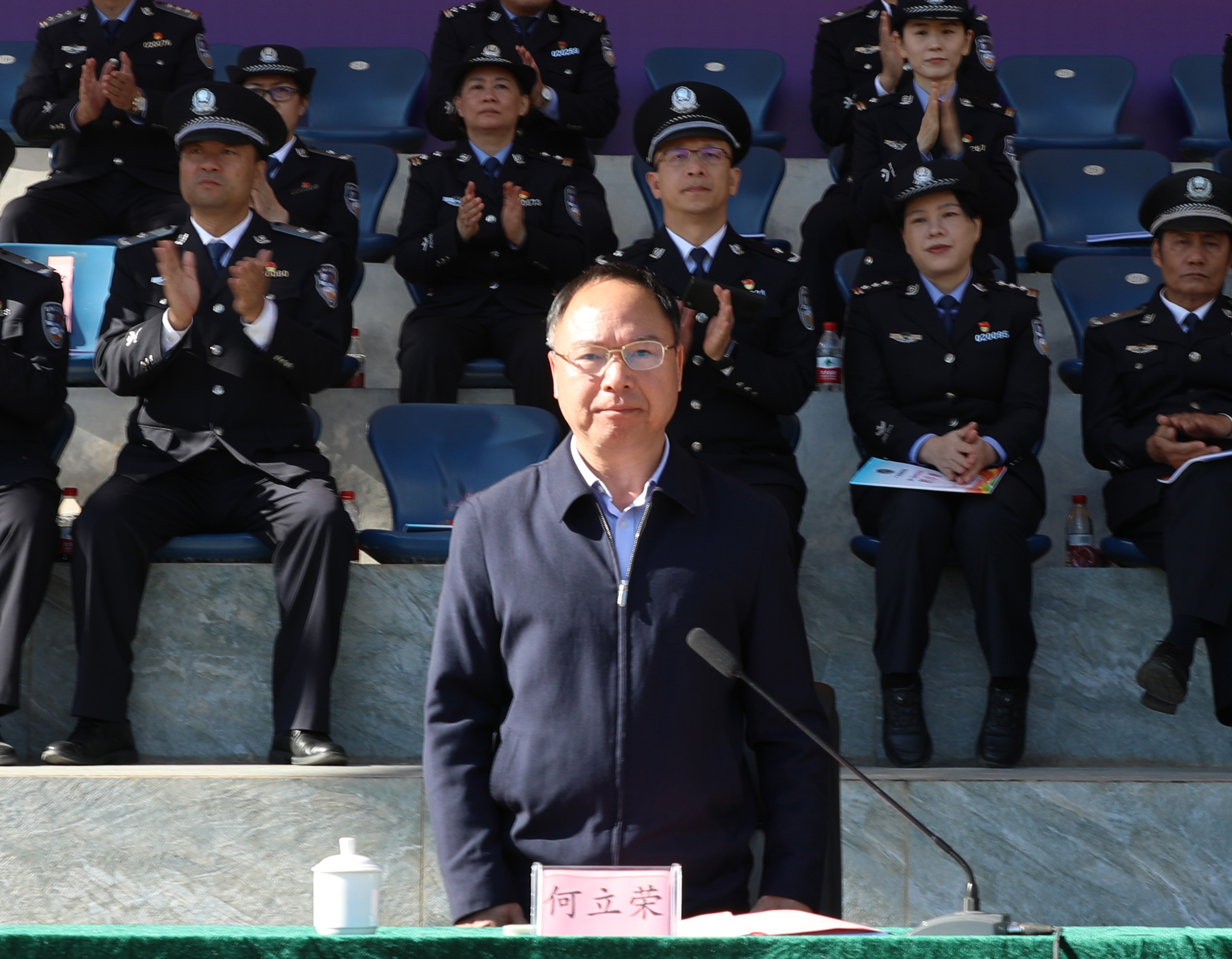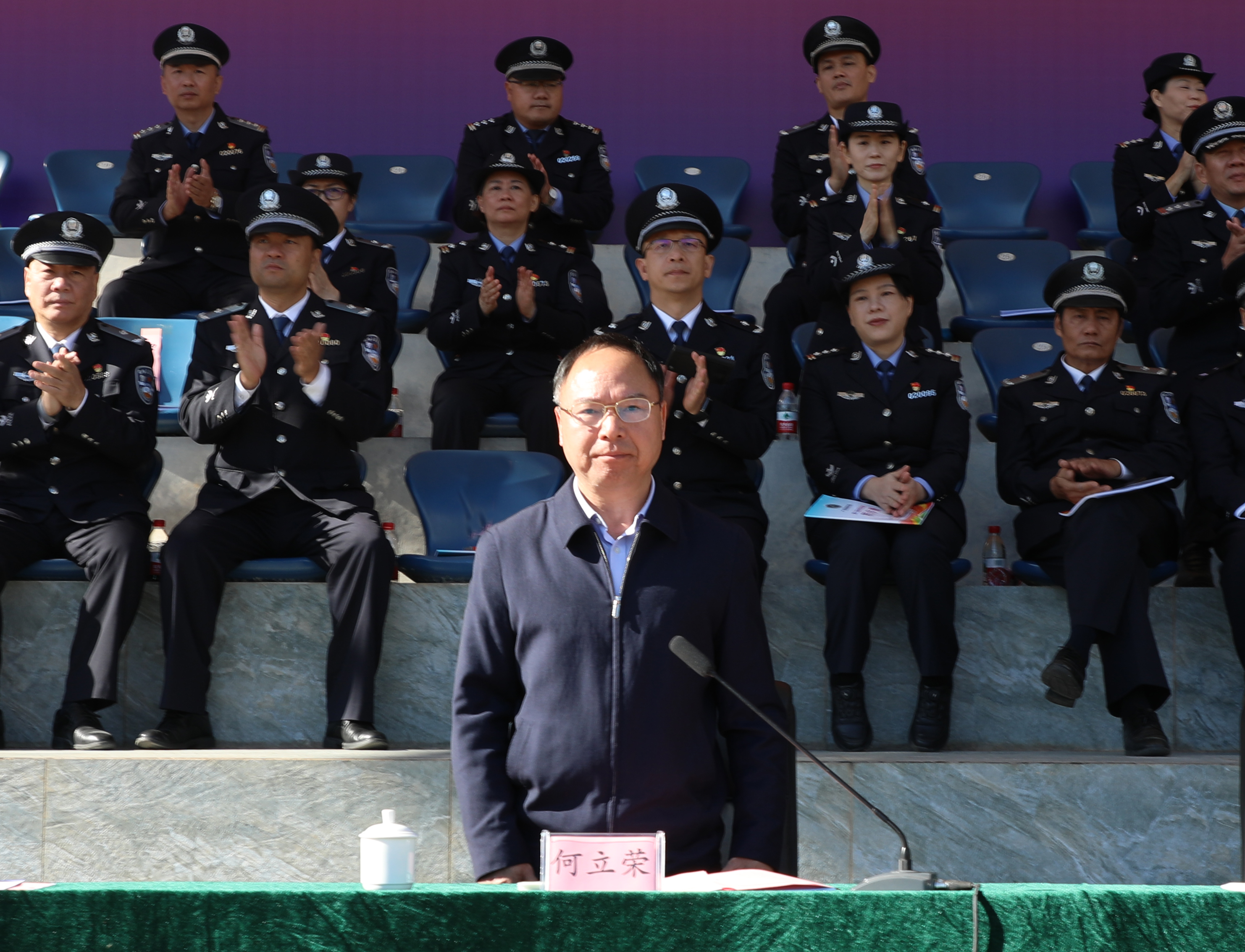 何立荣在闭幕式致辞中指出,本届运动会是一次团结的盛会、拼搏的盛会、成功的盛会。赛场上,运动员们秉承“友谊第一、比赛第二”的体育风尚,发扬“更快、更高、更强、更团结”的奥林匹克精神,不畏强手、锐意进取、顽强拼搏,展现了出色的运动水平,彰显了警院学子服从命令、坚韧不拔、团结协作的优良风貌与过硬素质。赛场外,裁判员秉公执裁、工作人员尽职尽责、志愿者热忱服务、领队与辅导员悉心指导、观众热情助威,各方力量凝聚成盛会圆满成功的坚实支撑。他希望全体师生能将赛场上的顽强拼搏、永不言败精神,转化为刻苦训练、锤炼本领的不竭动力,把体育运动中展现出的昂扬斗志和蓬勃朝气,转化为推动学校各项事业发展的强大合力,为法治广西、平安广西建设源源不断注入警院力量。
