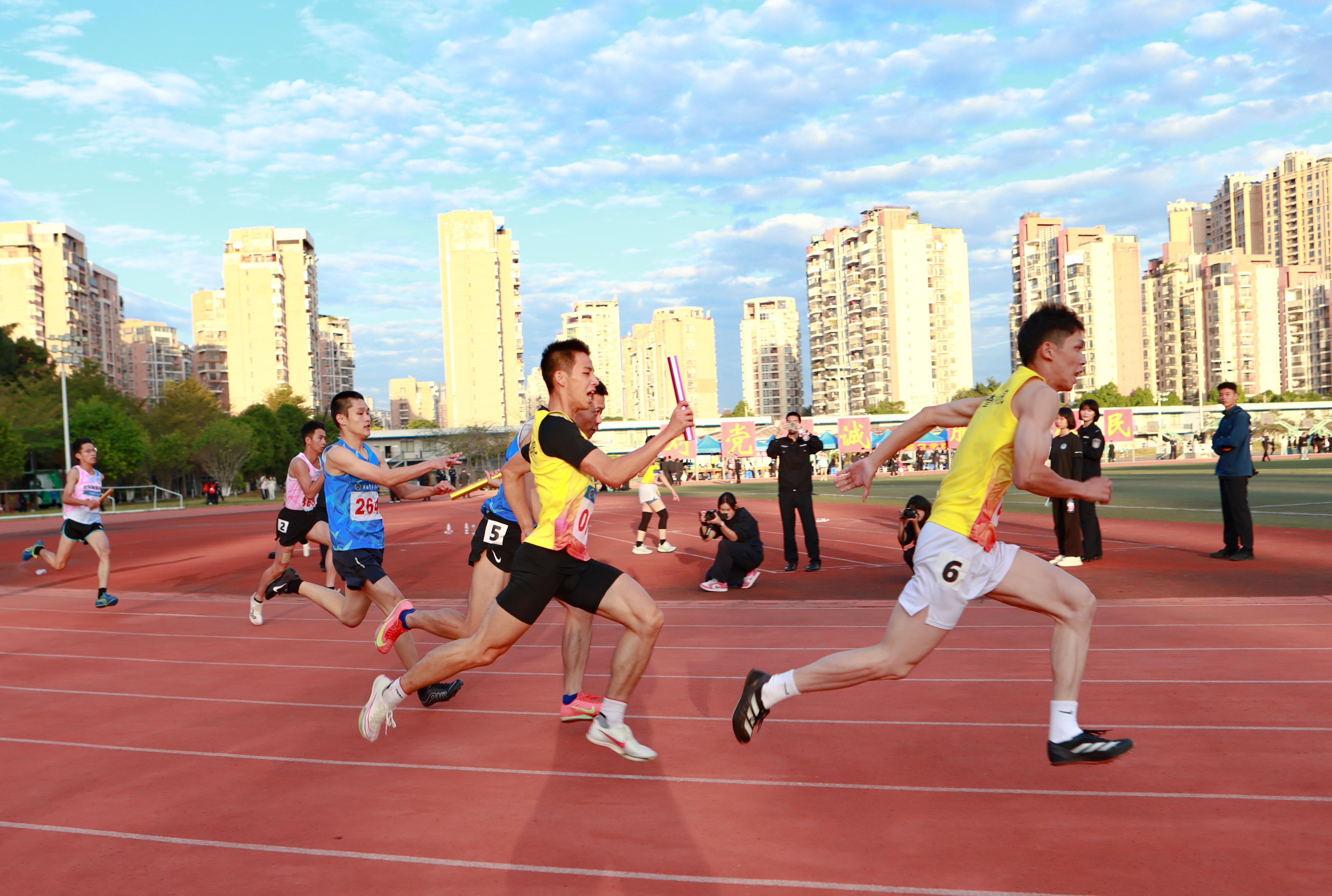 在比赛环节,运动员们以饱满的热情投入角逐:冲刺时的全力以赴、跳跃时的奋力一跃、投掷时的精准发力,每一个瞬间都彰显着他们积极进取的拼搏精神。观众席上呐喊助威声不绝于耳,赛场内外共同绘就一幅充满活力的画面。