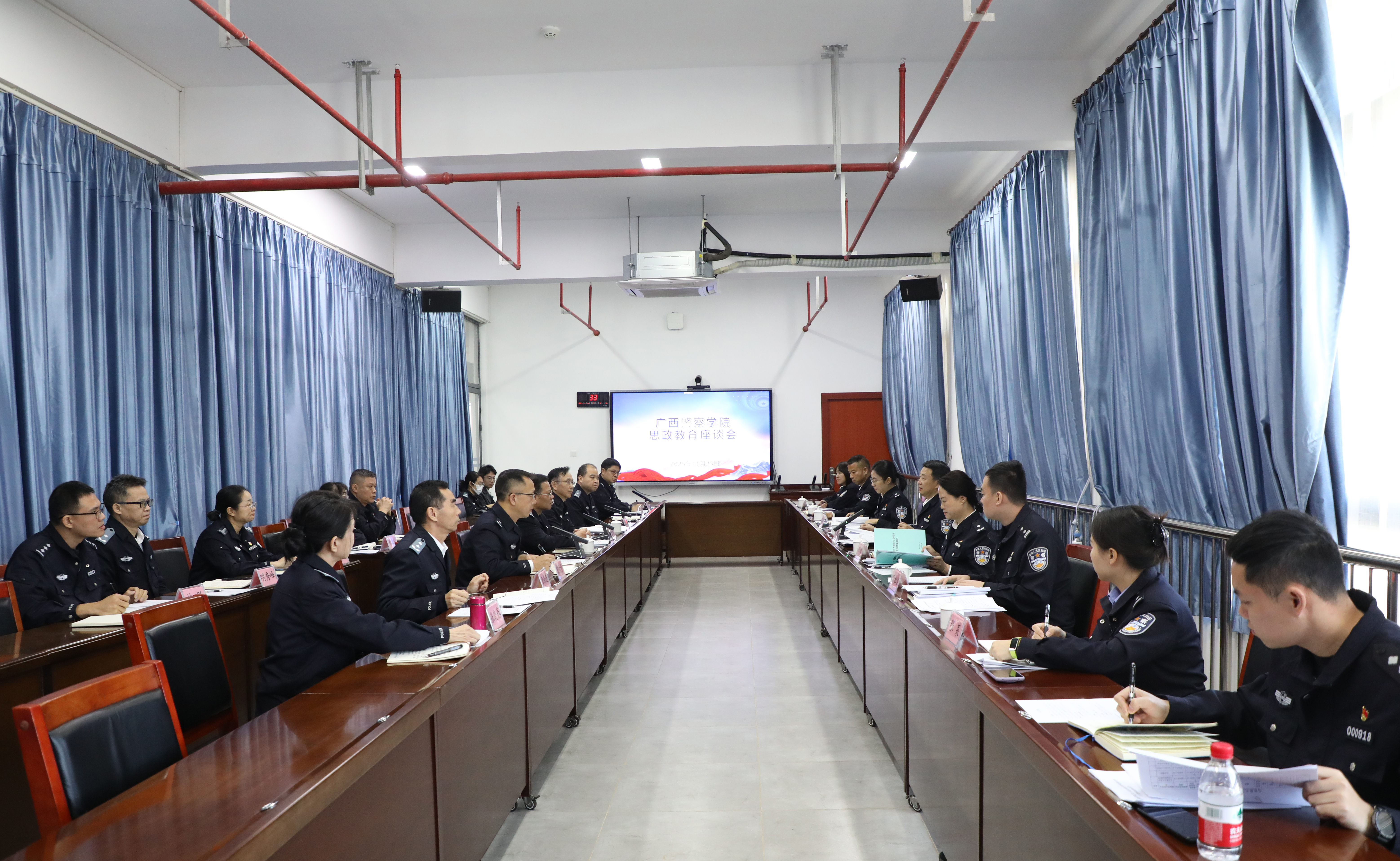 自治区公安厅人事训练处处长李华、警务处处长袁晗文,自治区公安厅人事训练处、警务处相关同志,学校学生工作部、教务处、马克思主义学院、侦查学院主要负责人,学校心理健康教育与咨询中心负责人、马克思主义学院专任教师代表、辅导员代表参加本次座谈会。