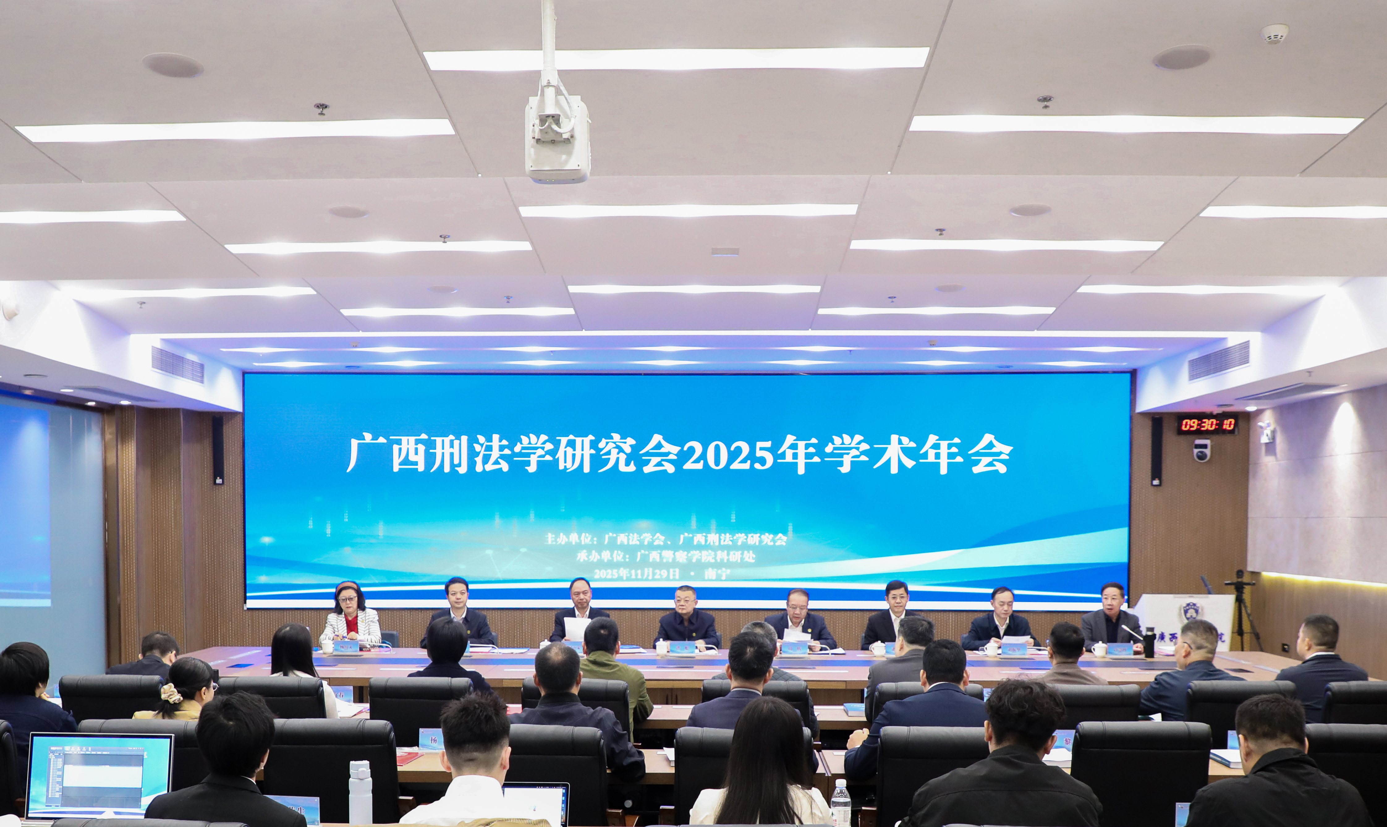 11月29日,由广西刑法学研究会主办、广西警察学院科研处承办的广西刑法学研究会2025年学术年会在我校仙葫校区召开。自治区法学会党组成员、副会长,广西法学研究行业党委书记洪彪,学校党委副书记、校长,自治区法学会副会长何立荣出席会议。