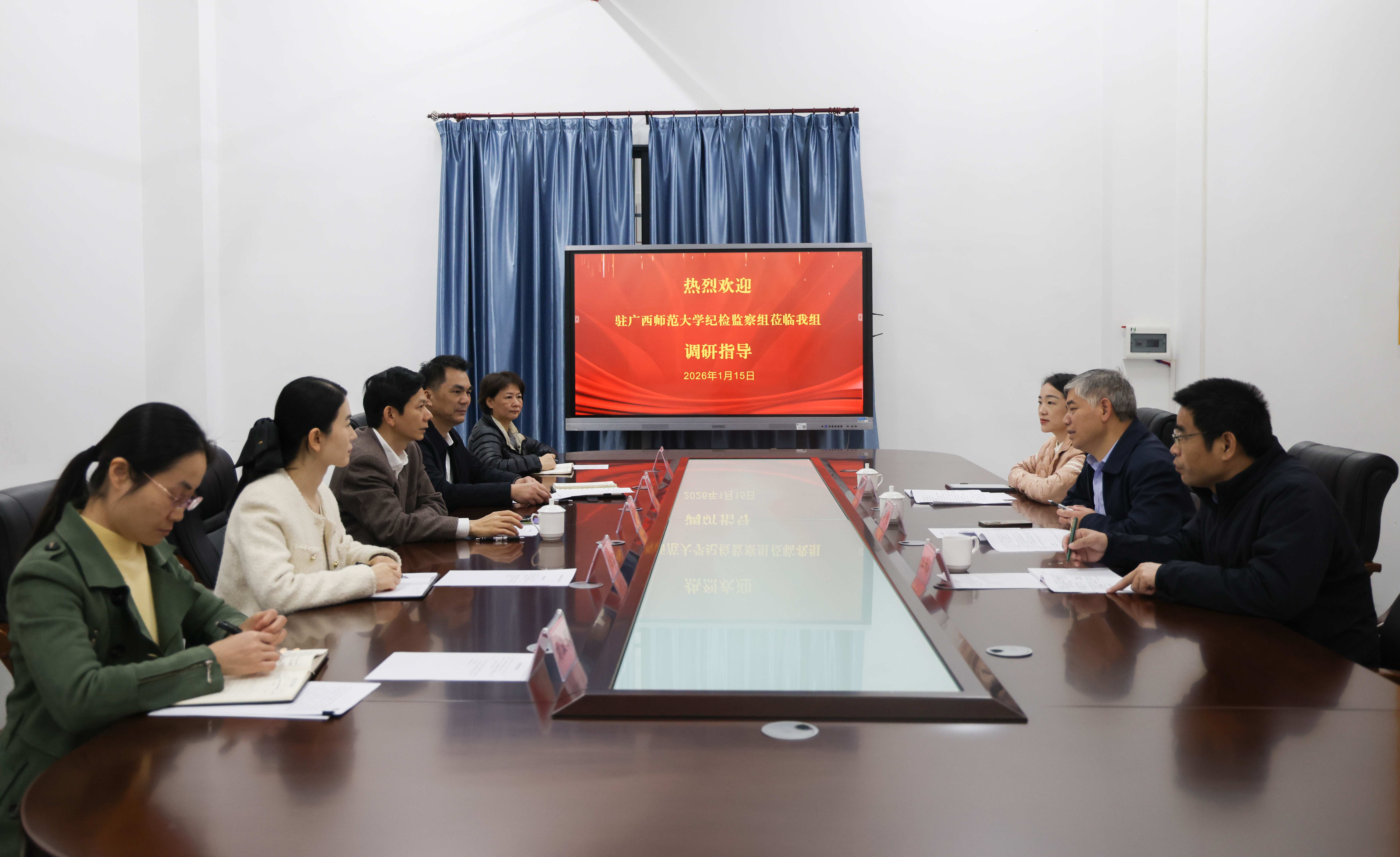 1月15日,为贯彻落实自治区党委教育工委工作部署,自治区纪委监委驻广西师范大学纪检监察组组长、广西师范大学党委副书记莫坷一行到我校就高校廉洁文化建设进行专题调研。自治区纪委监委驻校纪检监察组组长、校党委副书记、纪委书记黎东陪同调研,并主持召开座谈会。