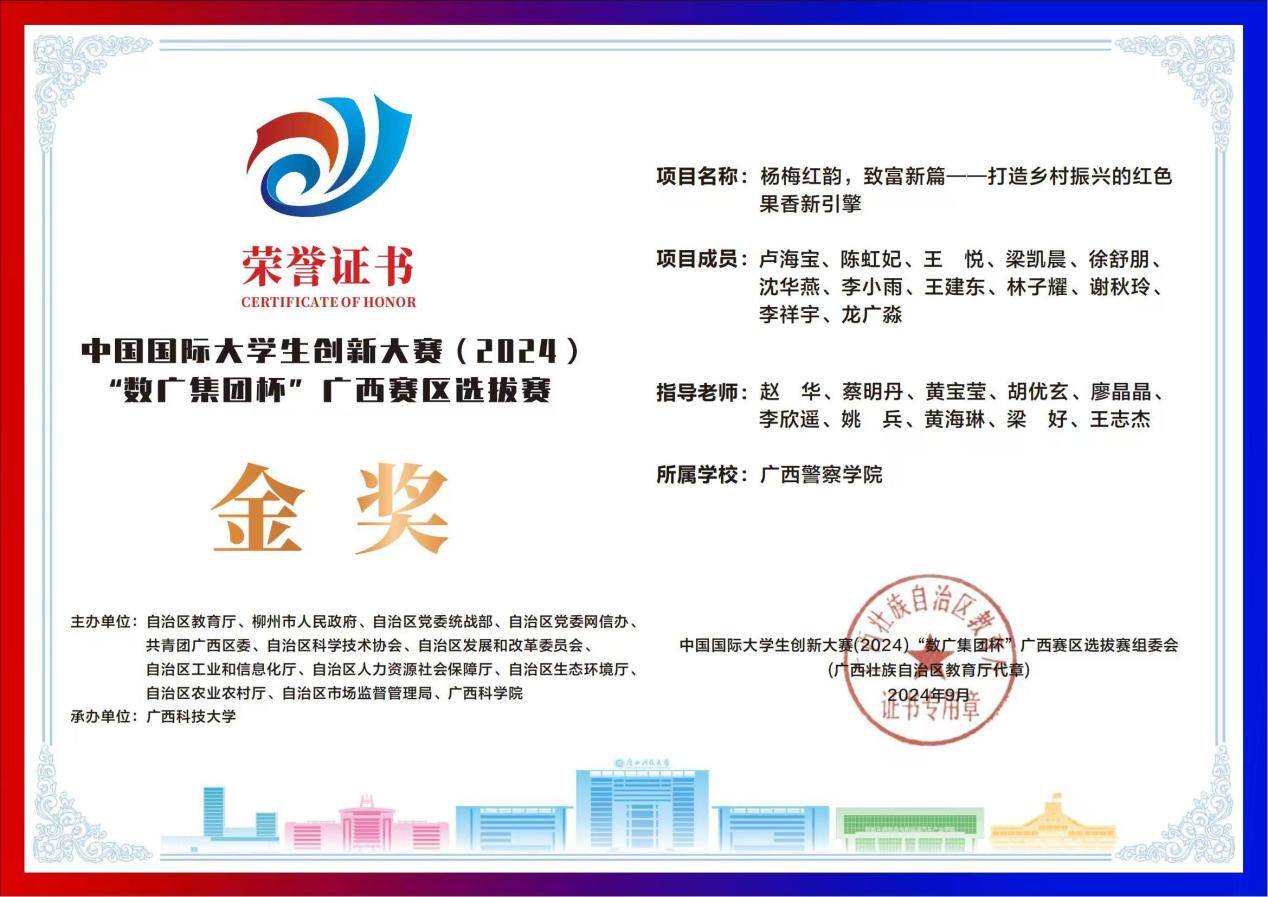 团队获中国国际大学生创新大赛(2024)“数广集团杯”广西赛区选拔赛金奖