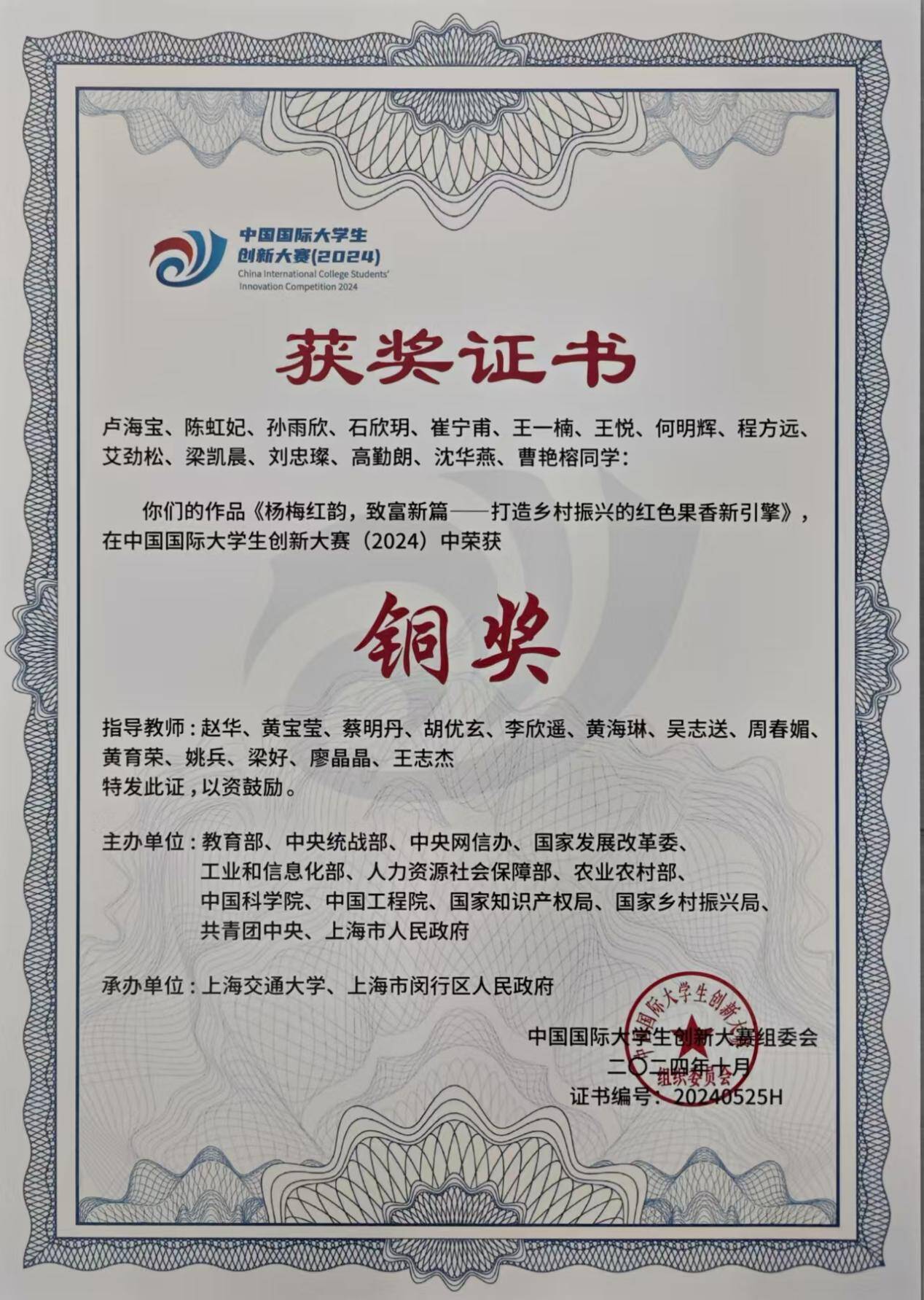 团队荣获中国国际大学生创新大赛(2024)铜奖