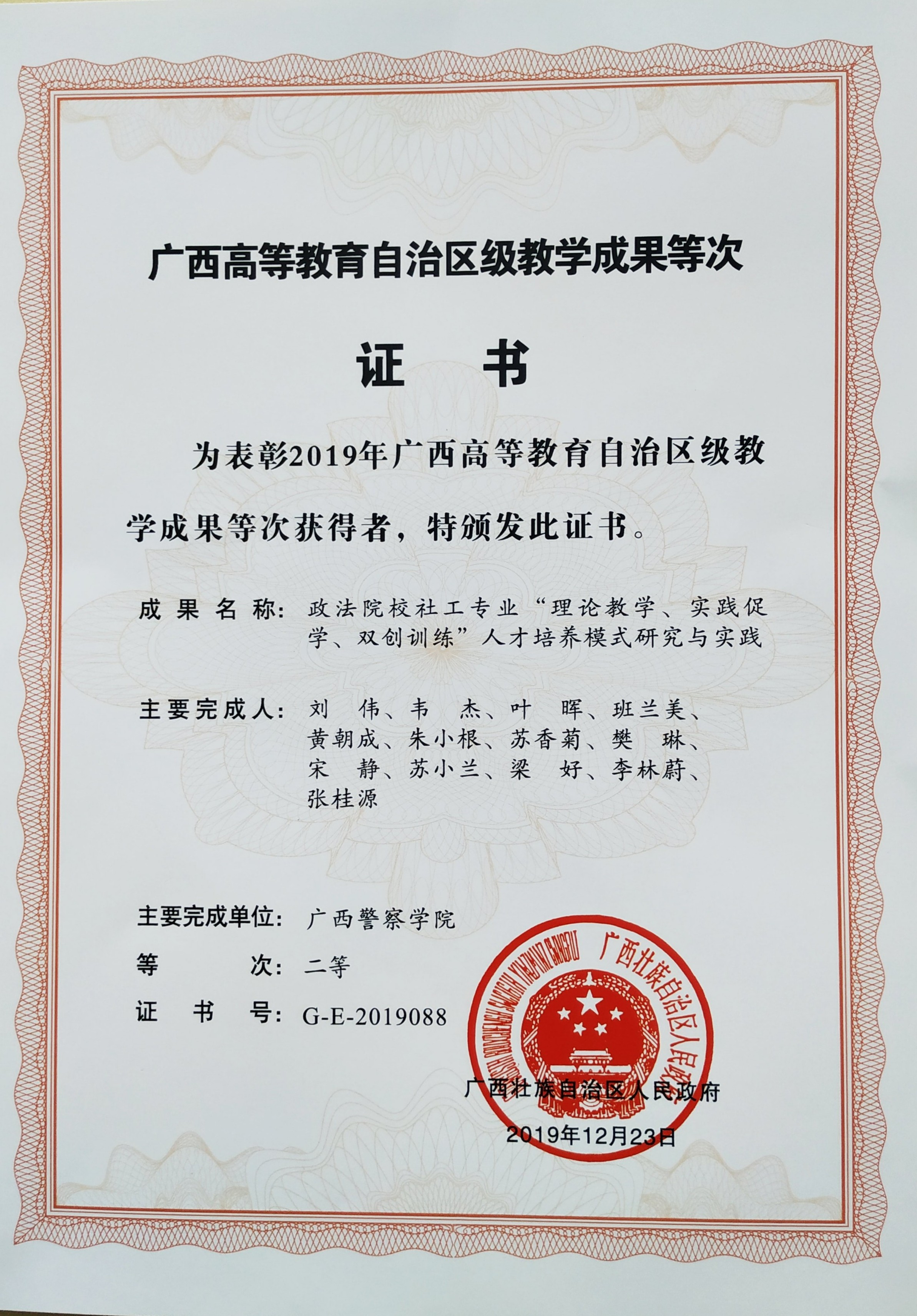 学院教学团队荣获广西高等教育自治区级教学成果二等奖