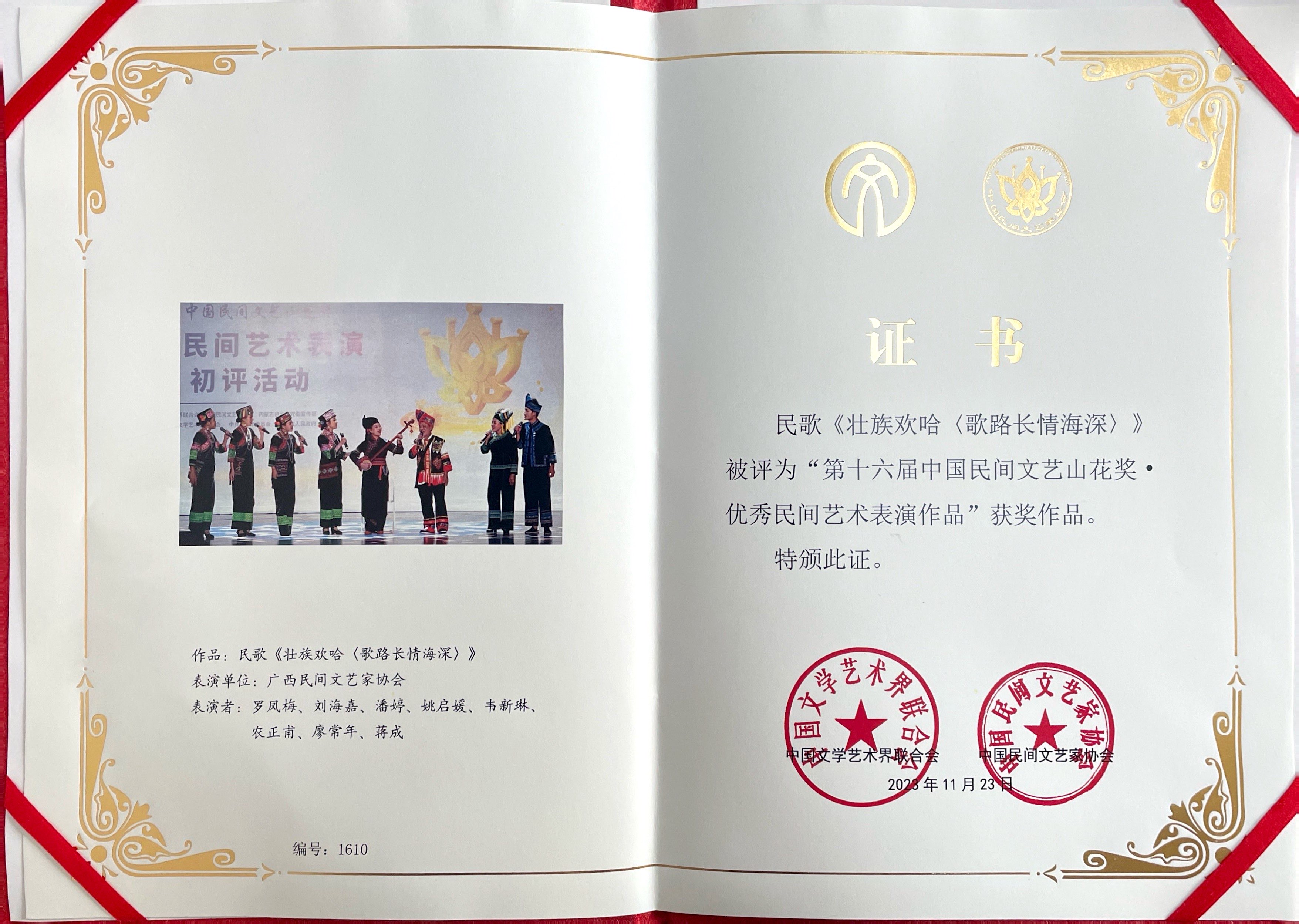 韦新琳老师获第16届中国民间文艺山花奖