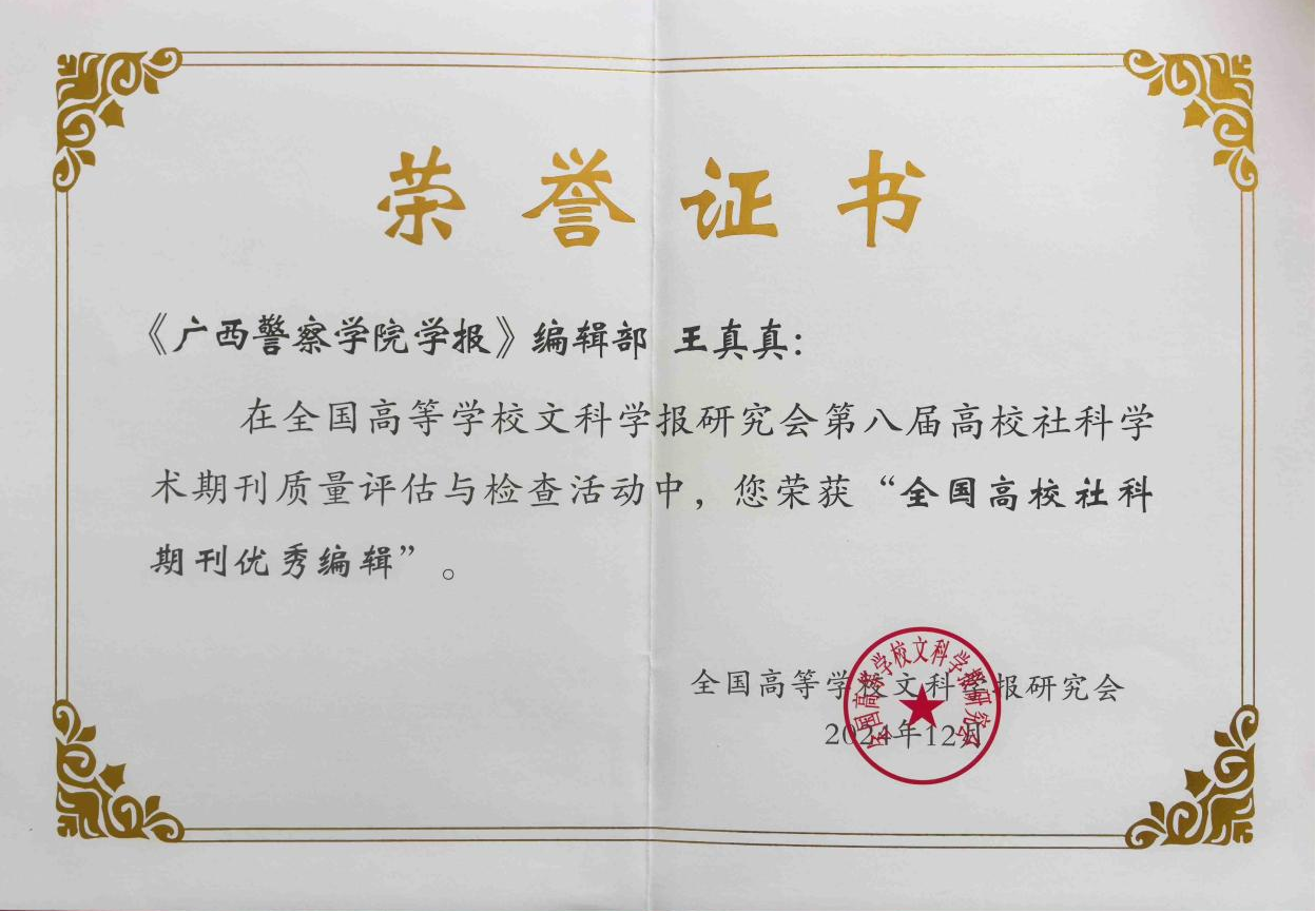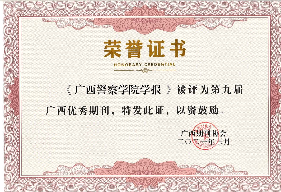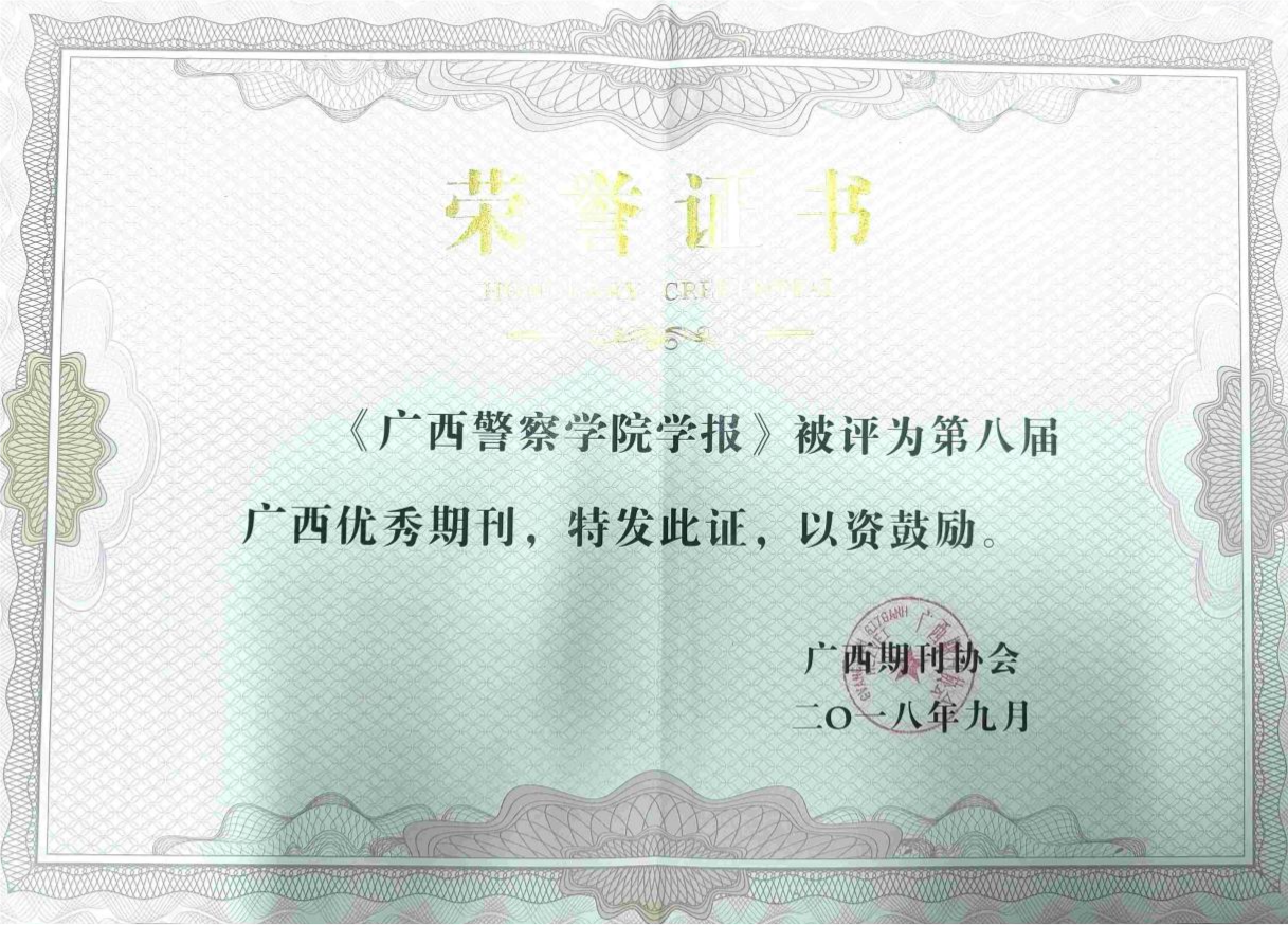 《广西警察学院学报》连续获得第八届、第九届“广西优秀期刊”,2023年获评第七届“全国高校优秀社科期刊”,多次荣获“广西高校学报名刊” “广西高校精品期刊” “广西高校优秀学报”等荣誉。