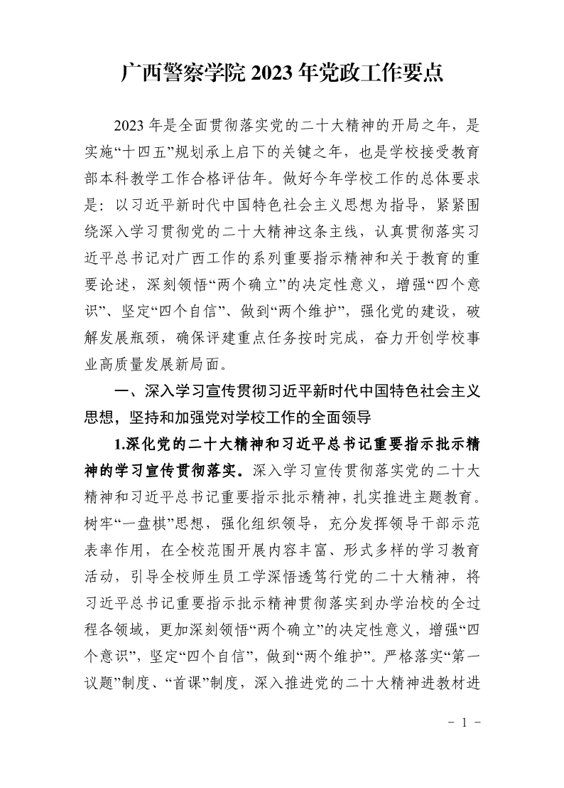 广西警察学院2023年党政工作要点