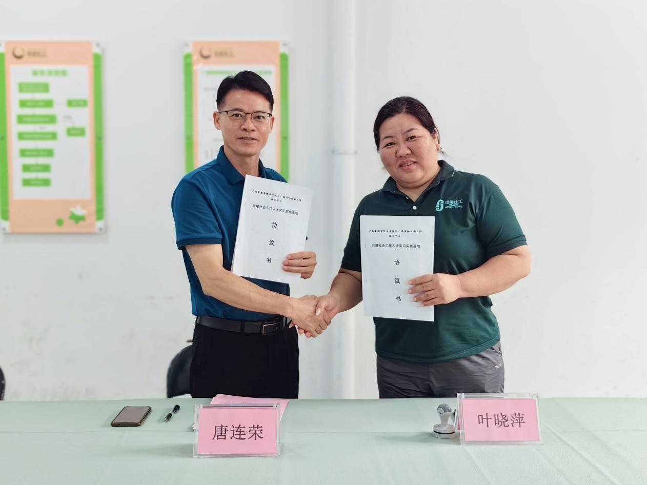 为进一步加强社会工作专业建设,探索校企合作新模式新经验,9月28日下午,法学院党总支书记唐连荣,社会工作专业教师连娟、杨晨笛一行赴广西佳和社会工作服务中心,签署社会工作专业共建实习基地合作协议。广西佳和社会工作服务中心总干事叶晓萍,副总干事周小幸,督导部李运妮、刘贤,传媒部钟凯璐出席了合作协议签字仪式。