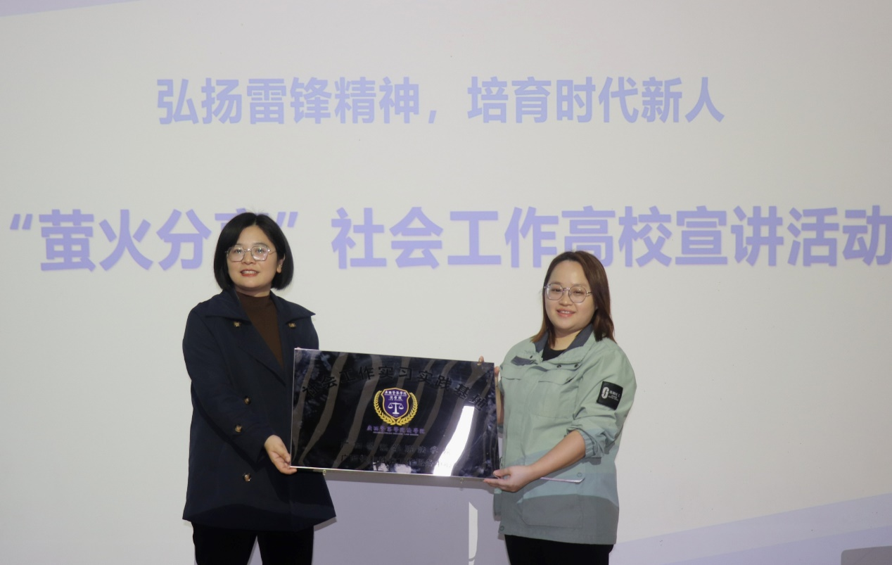 宣讲结束后举行了社会工作实习实践基地授牌仪式,本次活动进一步深化了校企合作协同培养新时代卓越社会工作人才合作机制。