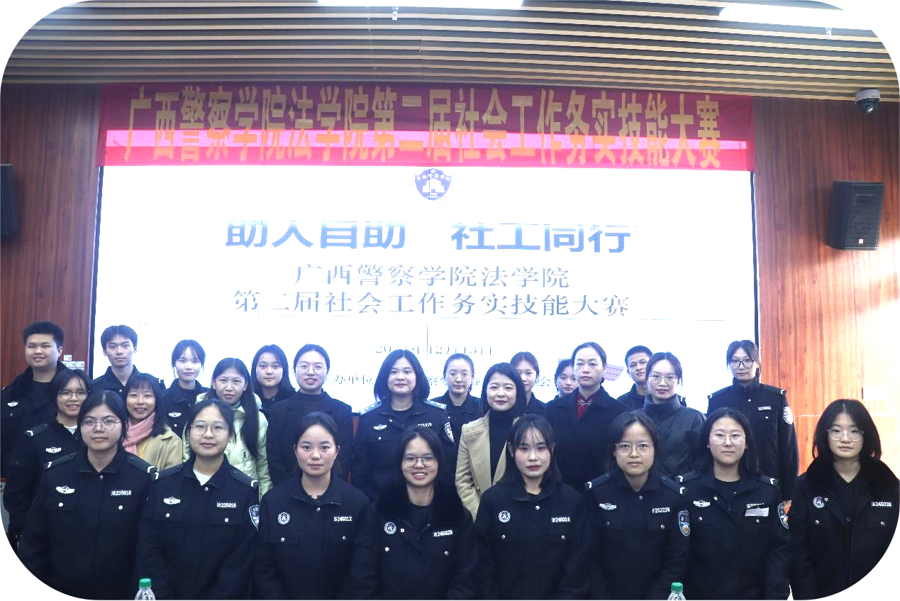 为了更好地检查社会工作实务技能的掌握情况,检验课赛结合的教学成果,2024年12月13日下午,以“助人自助,社工同行”为主题的学院第二届社会工作实务技能大赛,在五合校区一号实训楼410顺利举行。大赛由广西警察学院春风社工协会承办。