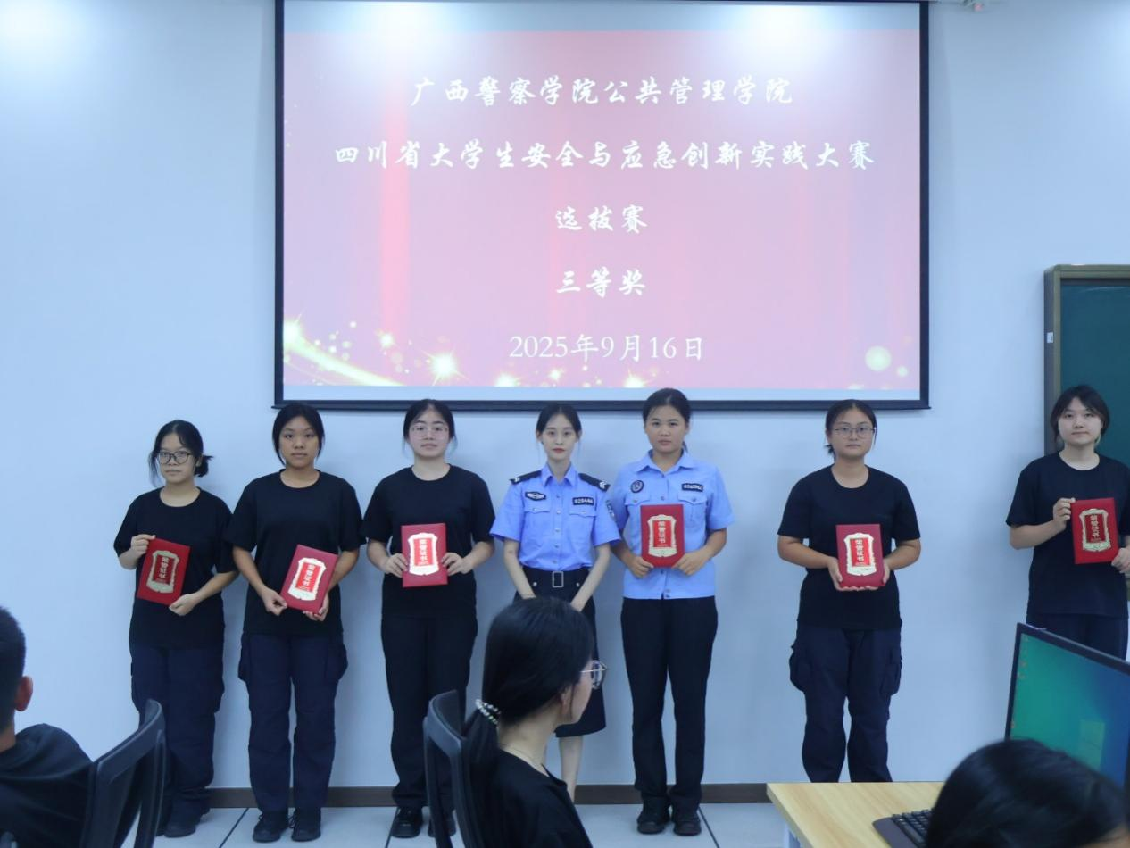 为深入贯彻落实国家关于加强大学生应急管理与安全教育的决策部署,进一步提升学生突发事件应对能力、树立应急理念、增强应急技能,2025年9月16日,广西警察学院公共管理学院第二届“四川省大学生安全与应急创新实践大赛”选拔赛,在五合校区2号实训楼101行政管理综合实务实验室圆满落幕。学院党总支书记樊宗高出席闭幕式并为获奖同学颁奖。