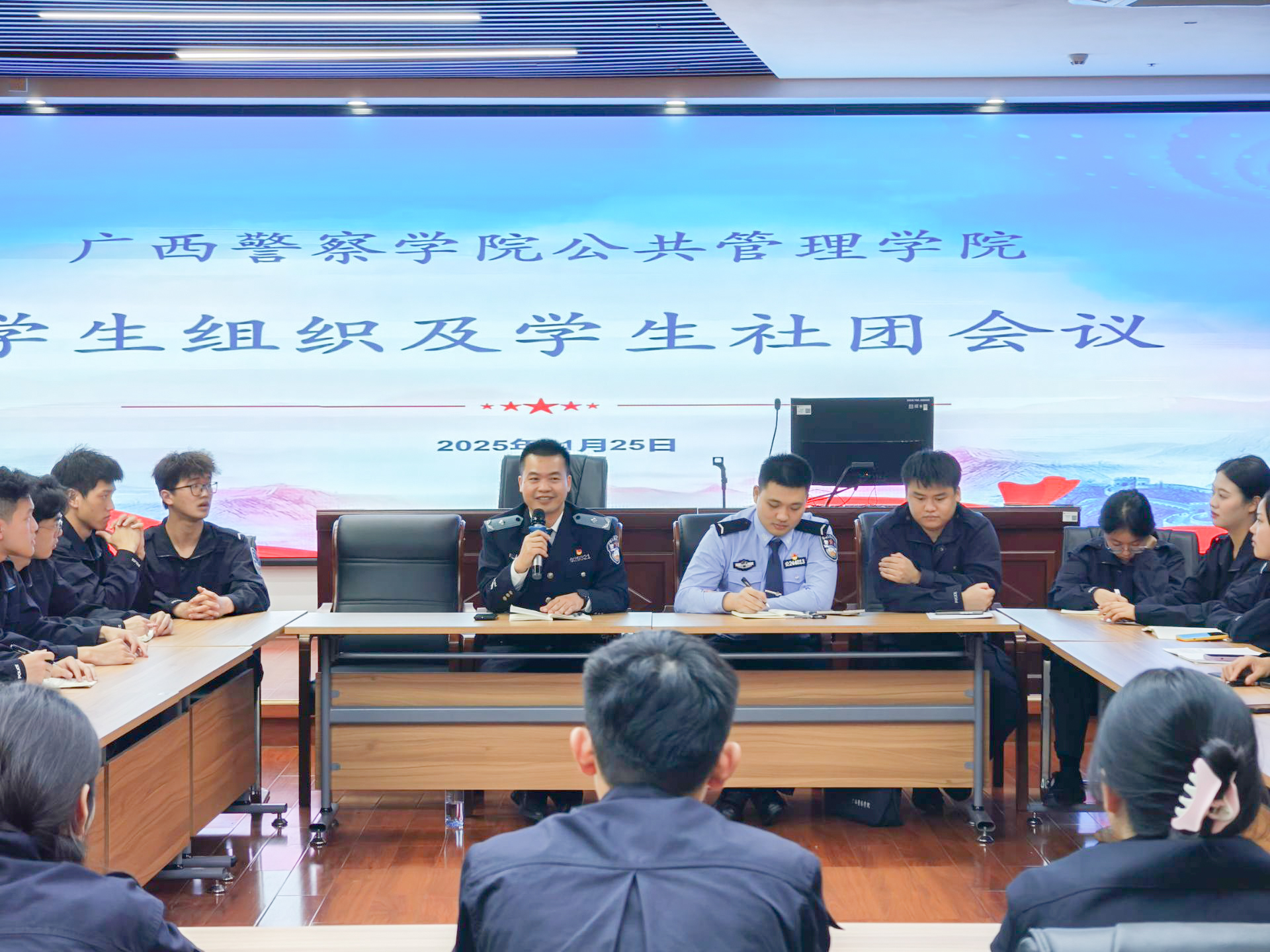 公共管理学院于11月25日下午开展了学生组织及学生社团工作汇报会,副院长农忠海主持会议,学生会、团委、数翼公管、学院艺术团、应急管理协会、督察队、教官团、急救侠,各支部等11个学生社团核心骨干参加。