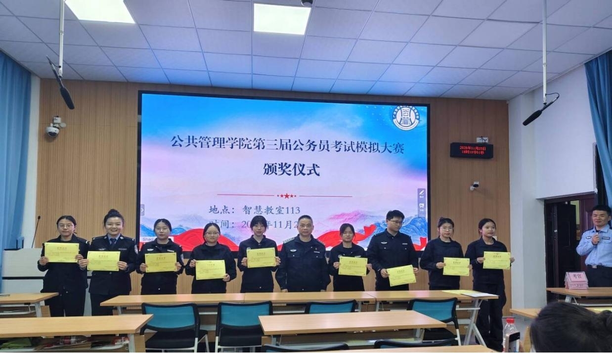 为落实我校应用型人才培养要求,提升学生专业素养与综合能力,帮助学子熟悉公务员选拔流程、掌握考试技巧、体验面试环节,公共管理学院第三届公务员考试模拟大赛于2025年11月15日至26日成功举办,吸引全院近200名有志于公职岗位的学生踊跃参与。