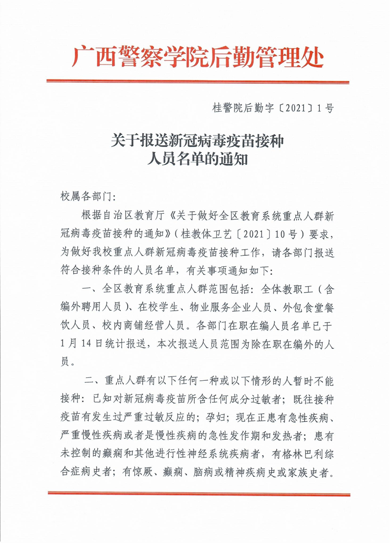 关于报送新冠病毒疫苗接种人员名单的通知