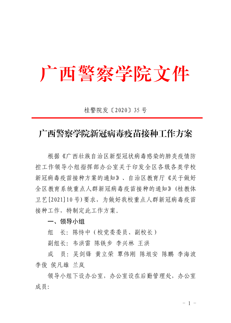 广西警察学院新冠病毒疫苗接种工作方案