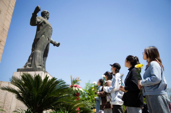 历史是最好的教科书,红色基因是最好的营养剂。在刚刚过去的清明节,许多地方开展祭奠、缅怀英烈活动,学史崇德、赓续精神。图为4月4日,人们在江苏省南京市雨花台烈士纪念碑前寄托哀思。(图片来源:人民视觉)