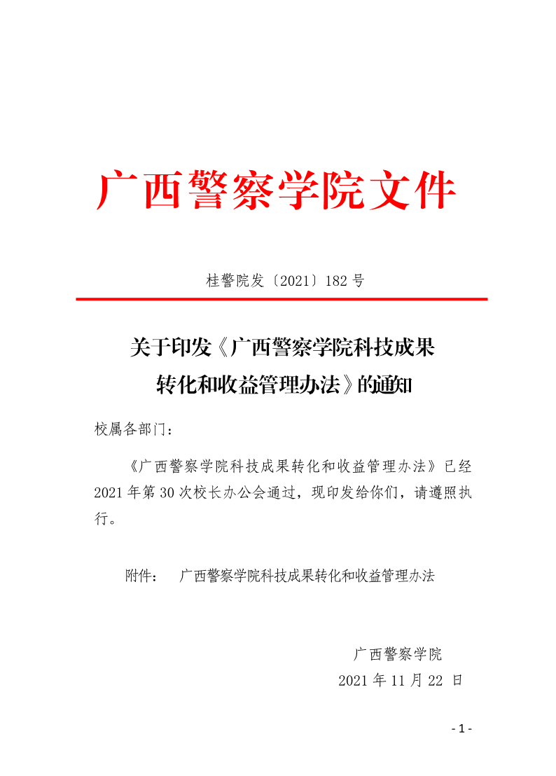 关于印发《广西警察学院科技成果转化和收益管理办法》的通知 来源: 发布时间:2021-12-01 11:45:28 浏览次数: 次 【字体:小 大】 智能标签: 印发 科技成果 转化 管理办法 分享到: 【打印正文】 相关内容