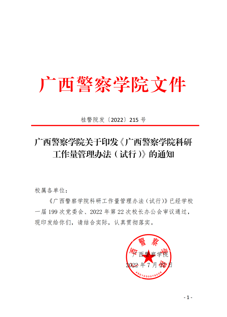 广西警察学院关于印发《广西警察学院科研工作量管理办法(试行)》的通知 来源: 发布时间:2022-07-28 11:25:17 浏览次数: 次 【字体:小 大】 智能标签: 印发 科研工作量 管理办法 分享到: 【打印正文】 相关内容