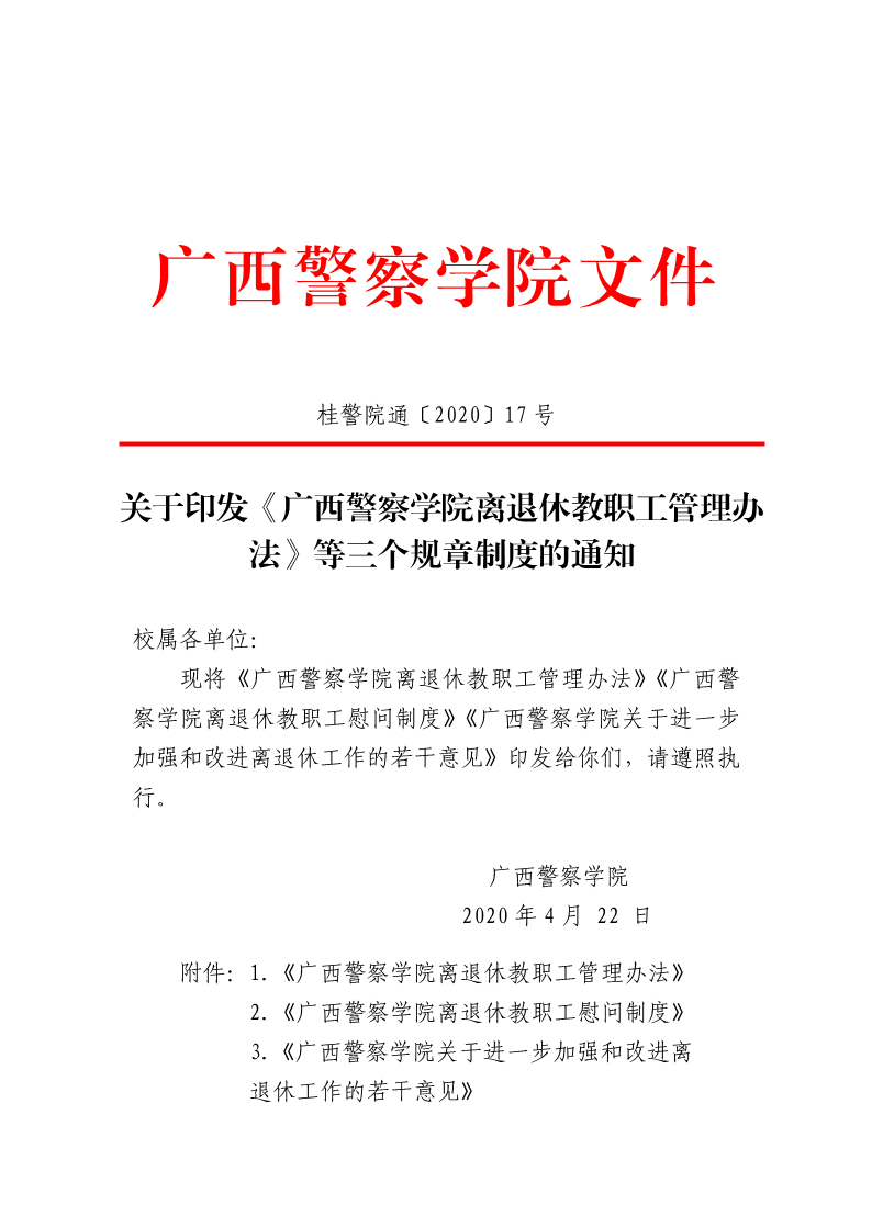 关于印发《广西警察学院离退休教职工管理办法》等三个规章制度的通知