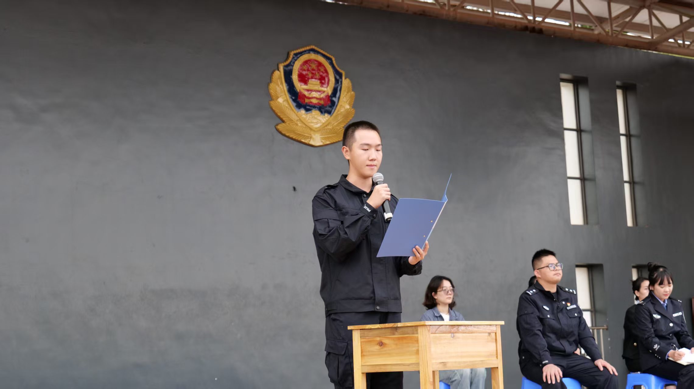 2025级司法警察学一区薛皓元作为学生代表发言,他郑重承诺将严格遵守警务化管理各项规定,以实际行动锤炼作风、担当表率。