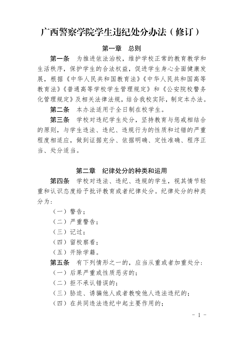广西警察学院学生违纪处分办法(修订)