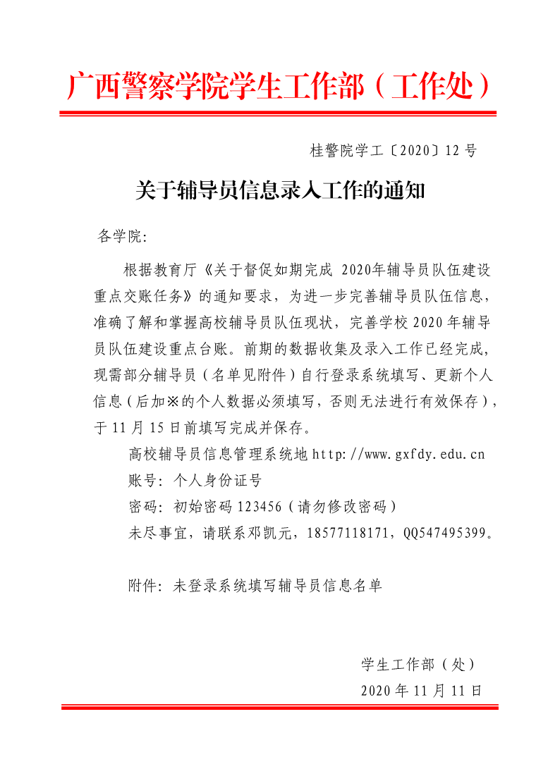 关于辅导员信息录入工作的通知