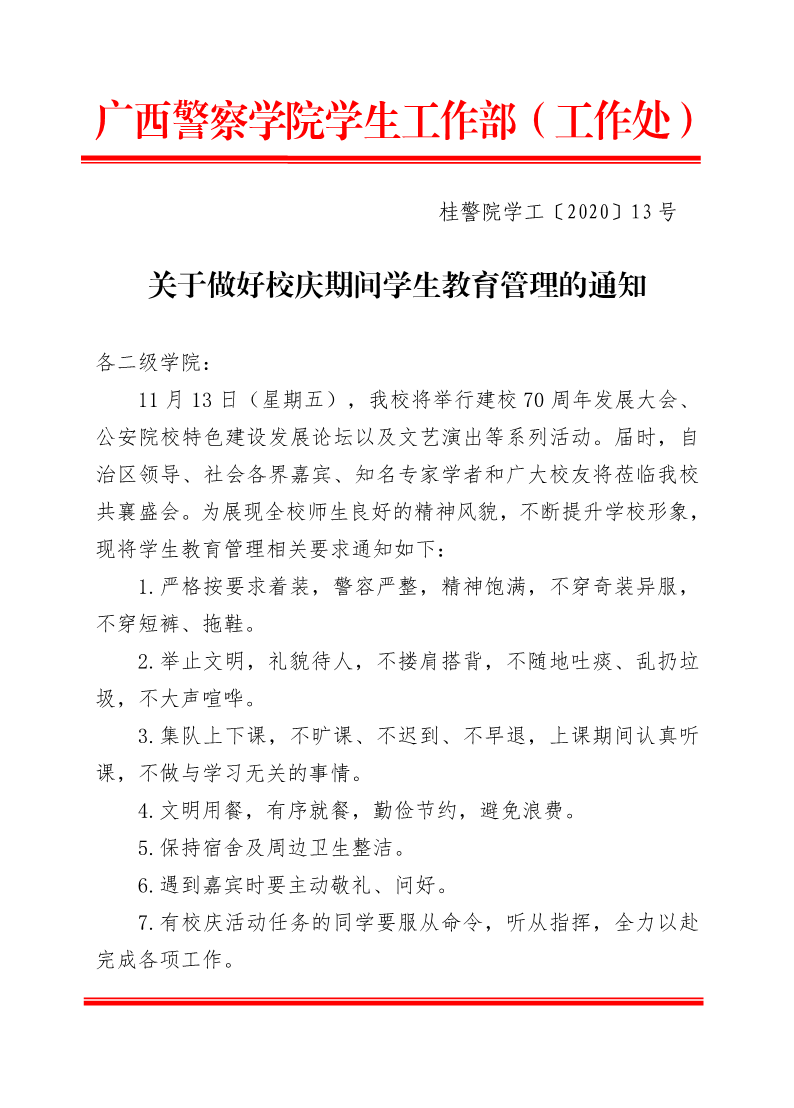 关于做好校庆期间学生教育管理的通知