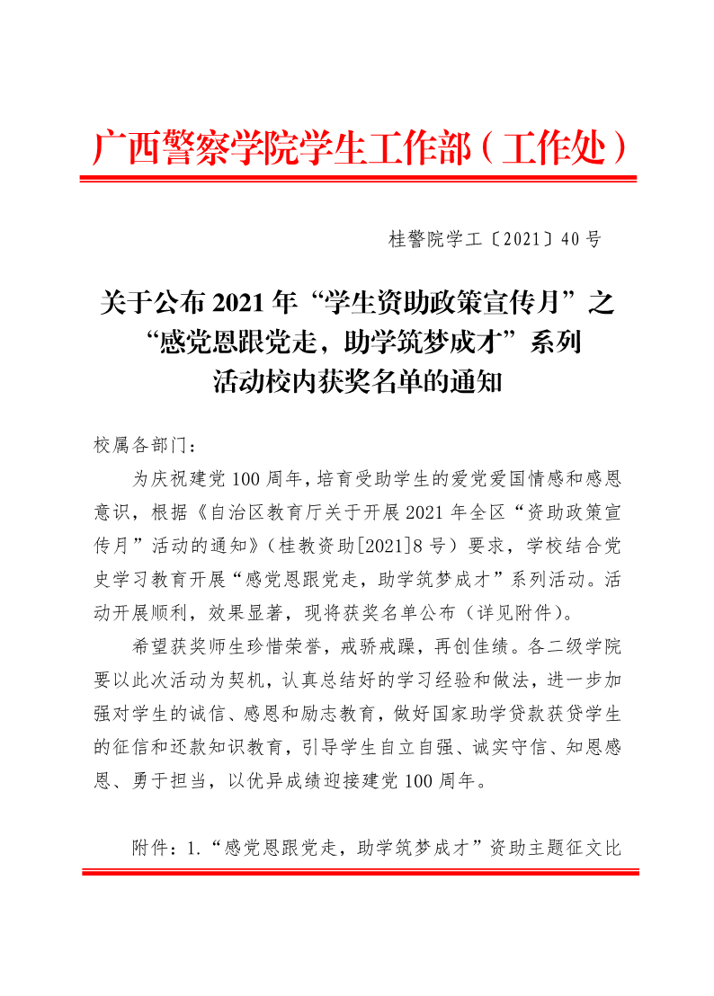 关于公布2021年“学生资助政策宣传月”之 “感党恩跟党走,助学筑梦成才”系列活动校内获奖名单的通知 来源: 发布时间:2021-05-17 12:20:26 浏览次数: 次 【字体:小 大】 分享到: 【打印正文】