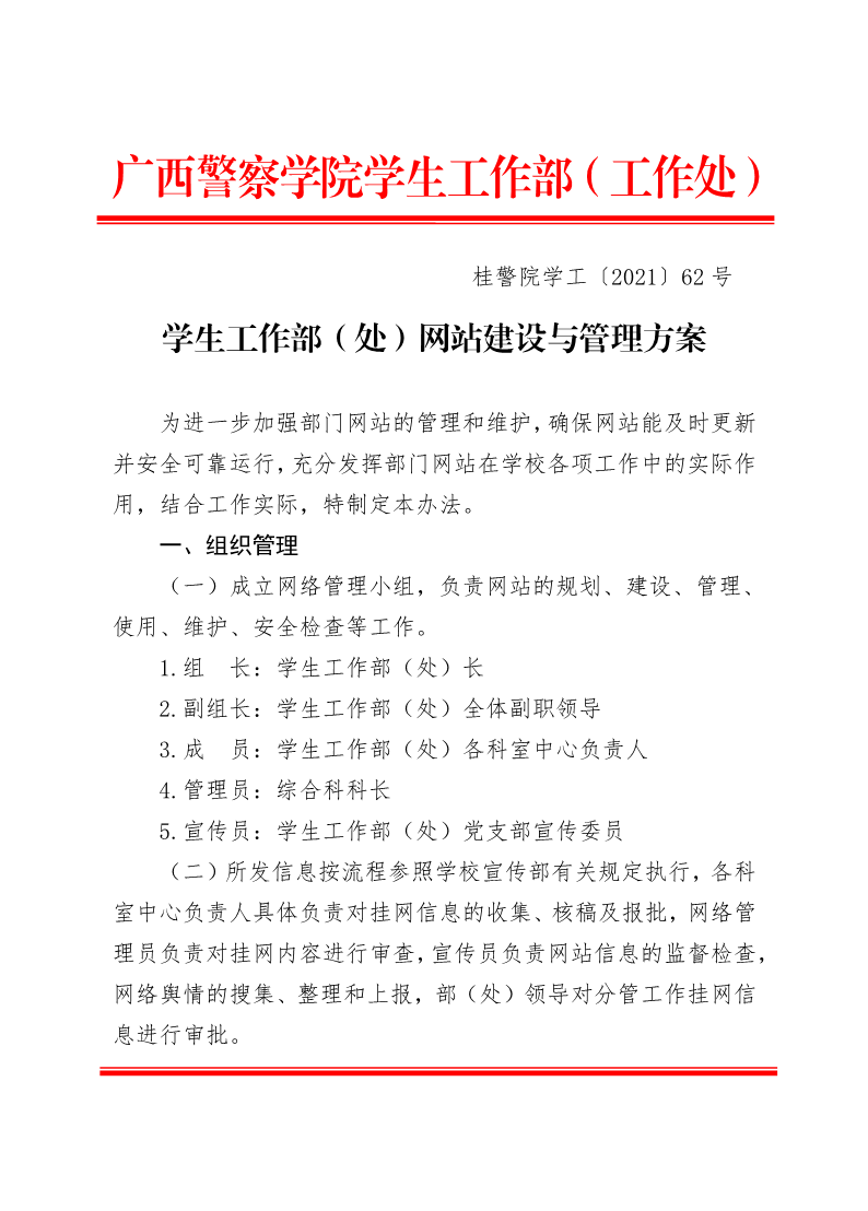 学生工作部(处)网站建设与管理方案