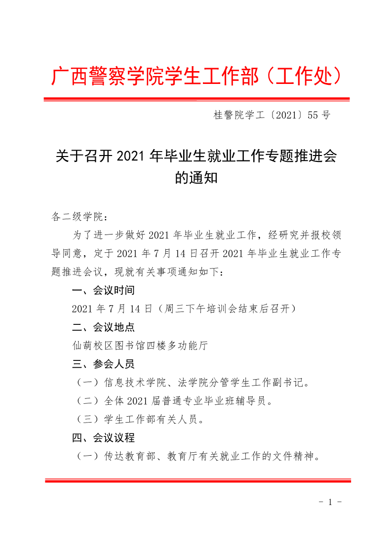 关于召开2021年毕业生就业工作专题推进会的通知