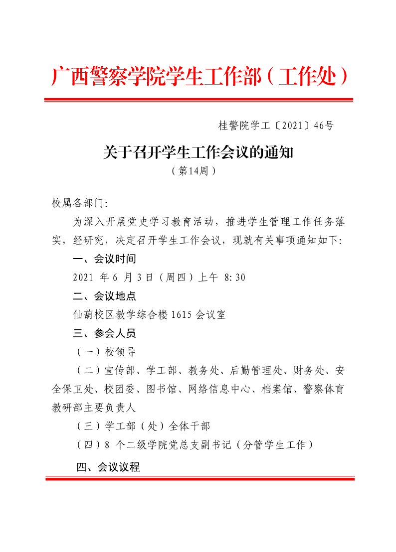 关于召开学生工作会议的通知