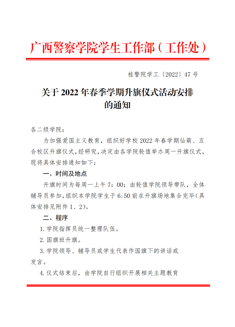 关于2022年春季学期升旗仪式活动安排的通知