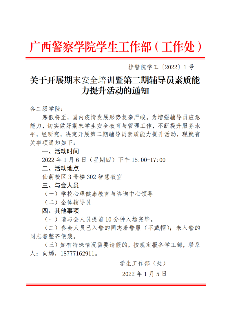 关于开展期末安全培训暨第二期辅导员素质能力提升活动的通知