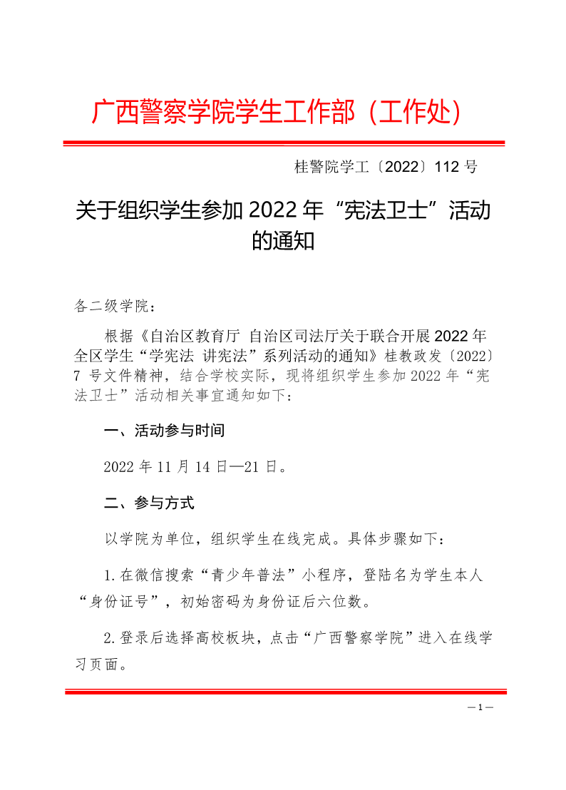 关于组织学生参加2022年“宪法卫士”活动的通知