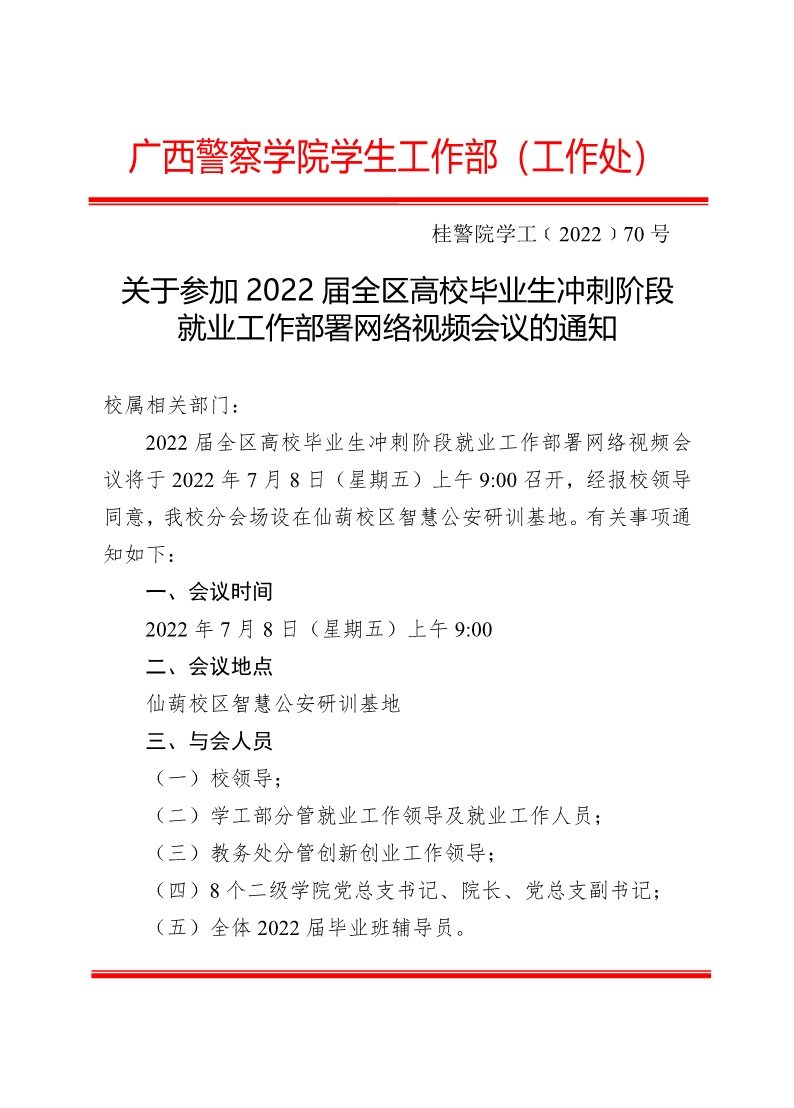 关于参加2022届全区高校毕业生冲刺阶段就业工作部署网络视频会议的通知