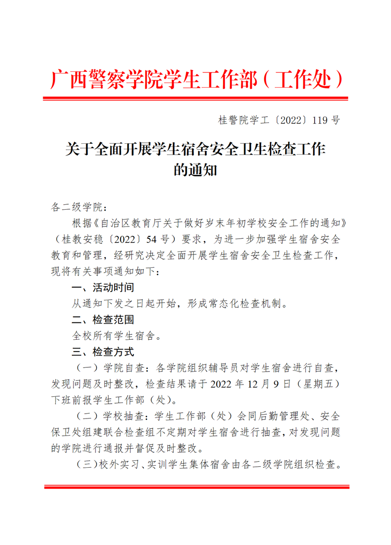 关于开展学生宿舍安全卫生检查工作的通知