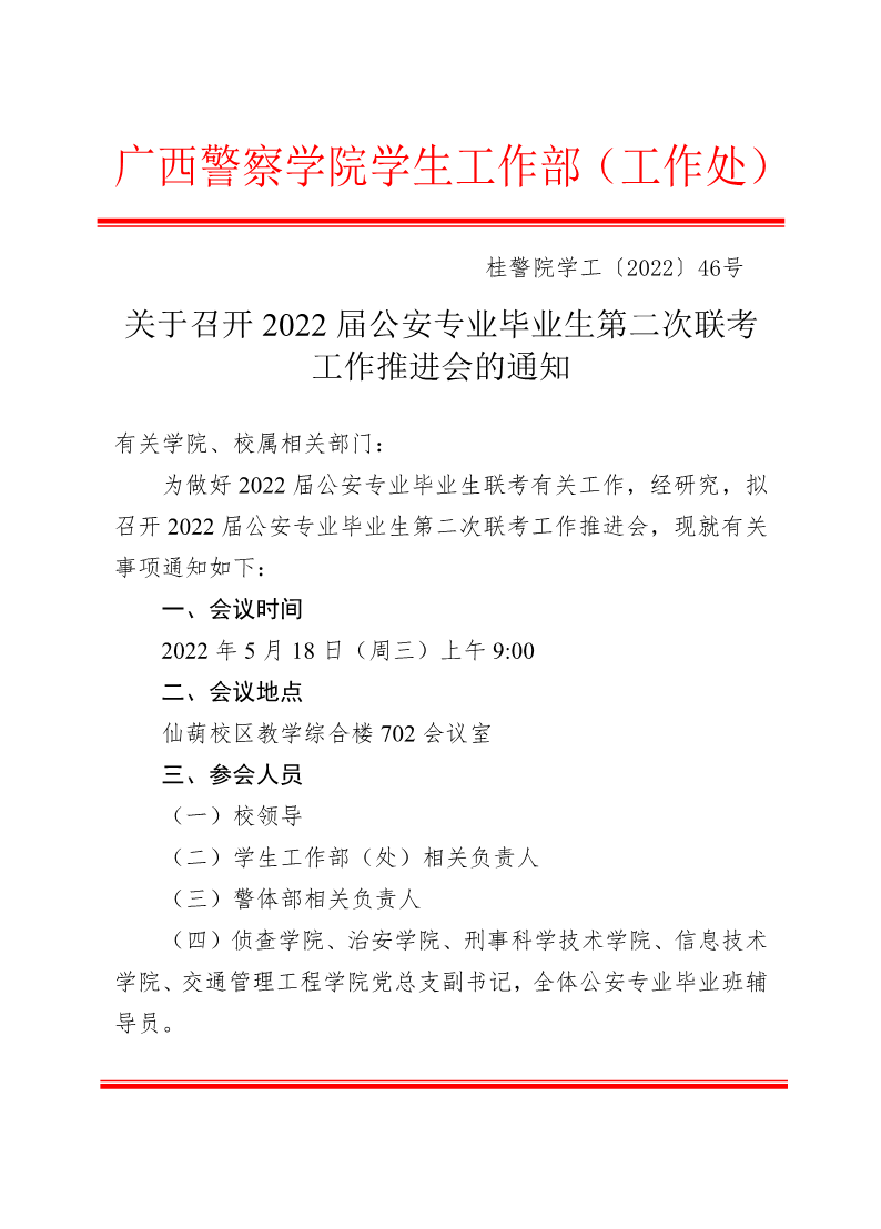 关于召开2022届公安专业毕业生第二次联考工作推进会的通知