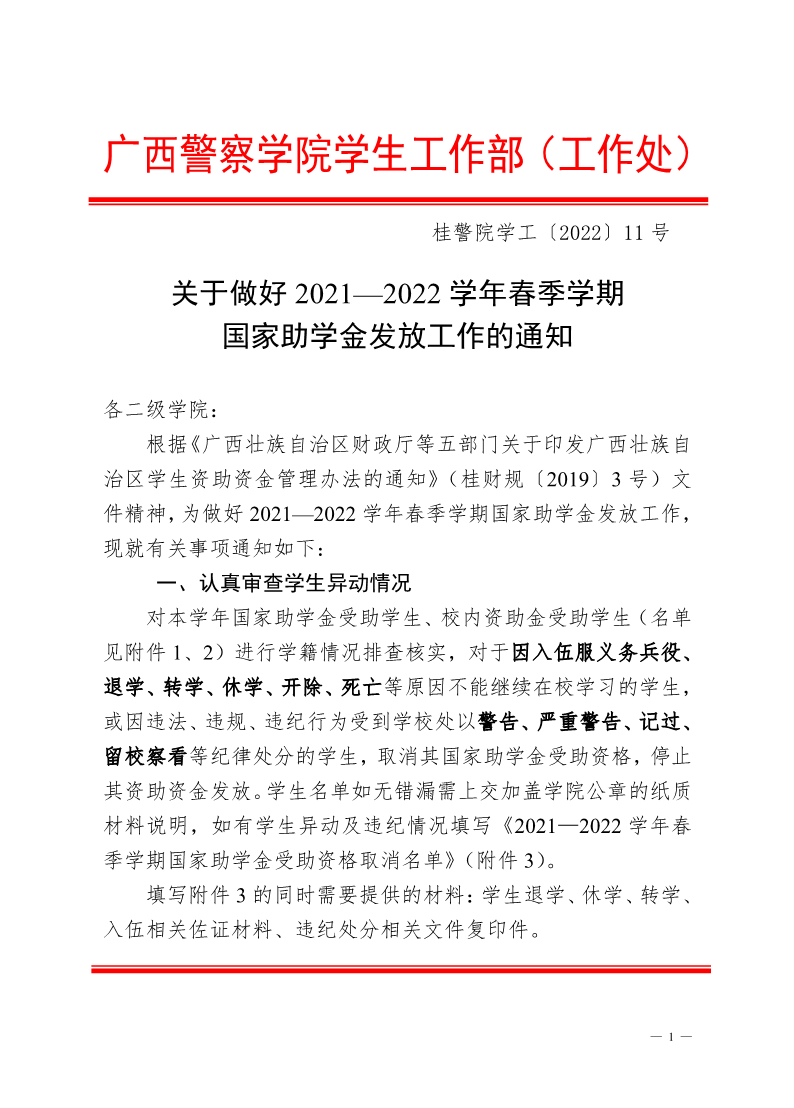 关于做好2021-2022学年春季学期国家助学金发放工作的通知
