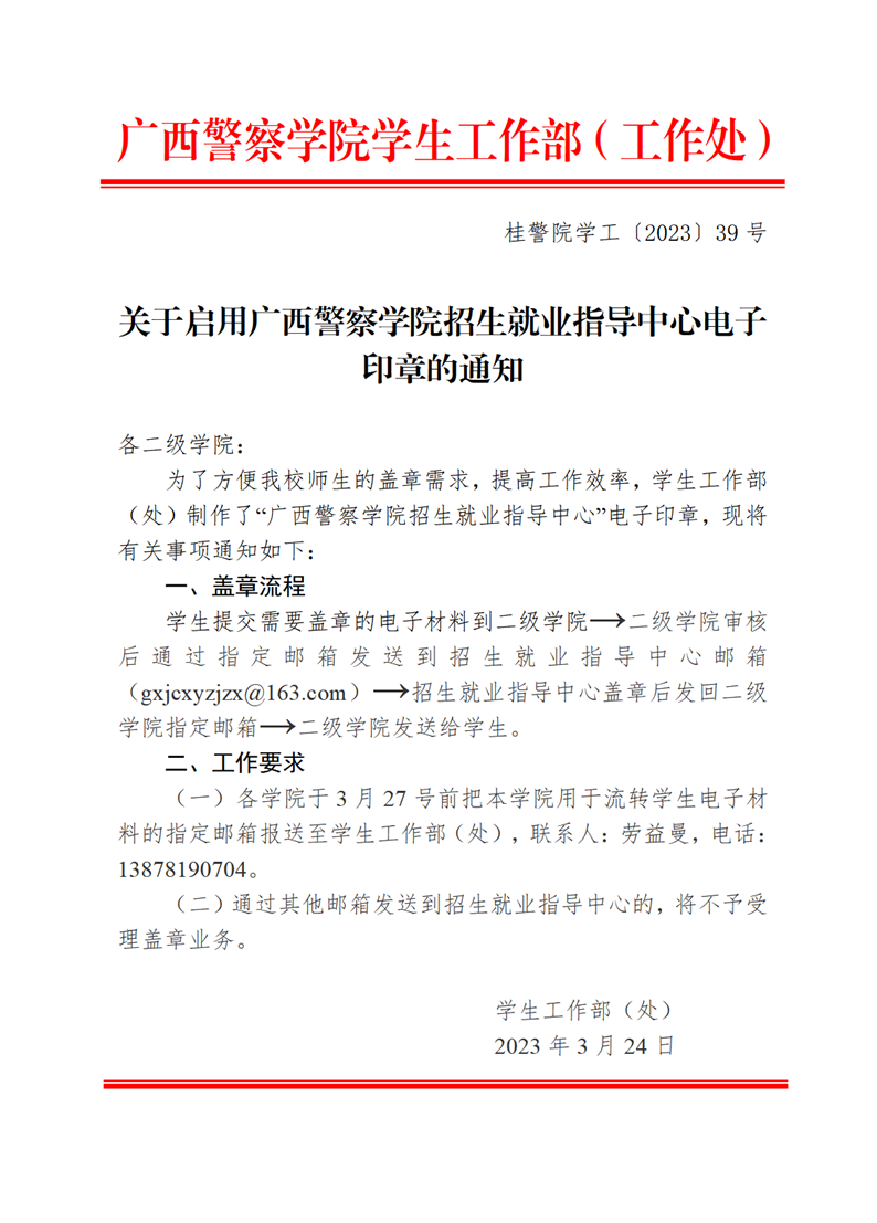 关于启用广西警察学院招生就业指导中心电子印章的通知