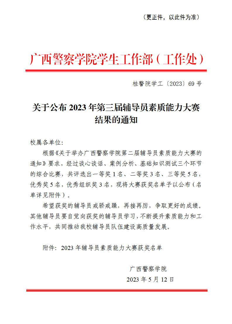 关于公布2023年第三届辅导员素质能力大赛结果的通知
