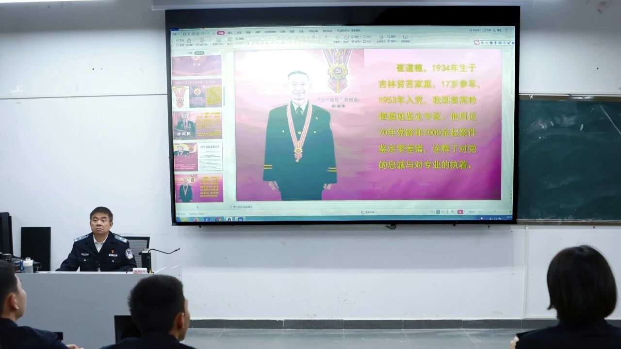 丁明副院长围绕“七一勋章”获得者崔道植的从警生涯,结合刑事科学技术专业特点,解读了崔道植“以科技为刃、以匠心守正”的精神内核,勉励学子以崔道植为标杆,用专业和严谨守护正义,让每一起案件都经得起历史的检验。