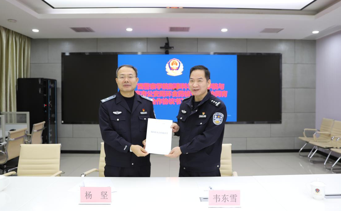 学院分别与来宾市公安局环境资源和食品药品犯罪侦查支队、兴宾分局、金秀瑶族自治县公安局现场签署协同育人合作协议,并举行协同育人基地挂牌仪式。
