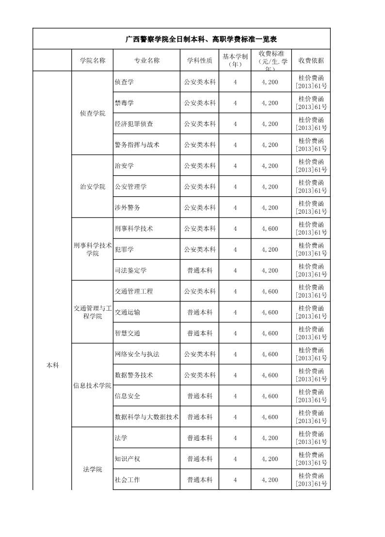 2025-2026学年全日制普通本科、高职收费标准一览表