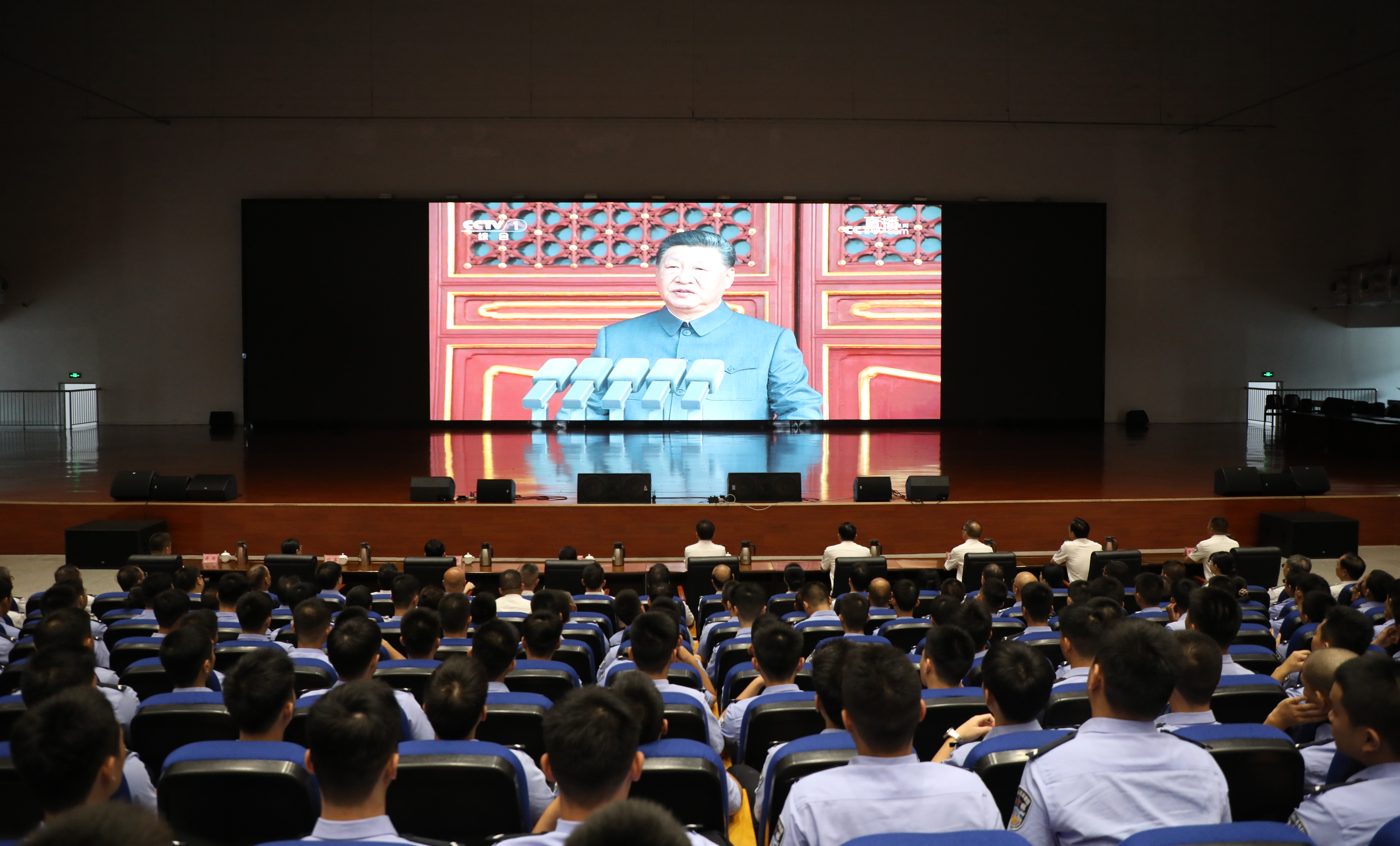 师生共同观看纪念抗战胜利80周年大会,这是一堂生动的思政课,是一场教育引导全校师生赓续红色血脉的精神洗礼。我们要把伟大抗战精神融入育人全过程,充分挖掘和展示校史中蕴含的红色基因,构建红色文化、英模文化、法治文化、警营文化“四位一体”的忠诚文化育警体系,开展抗战历史教育、开设红色课程、组织缅怀先烈活动,厚植学生家国情怀,筑牢信仰之基,引导师生从历史中汲取精神养分,转化为教师躬耕教坛、学生刻苦学习训练的行动,勇担时代使命,为实现中华民族伟大复兴的中国梦而努力奋斗。