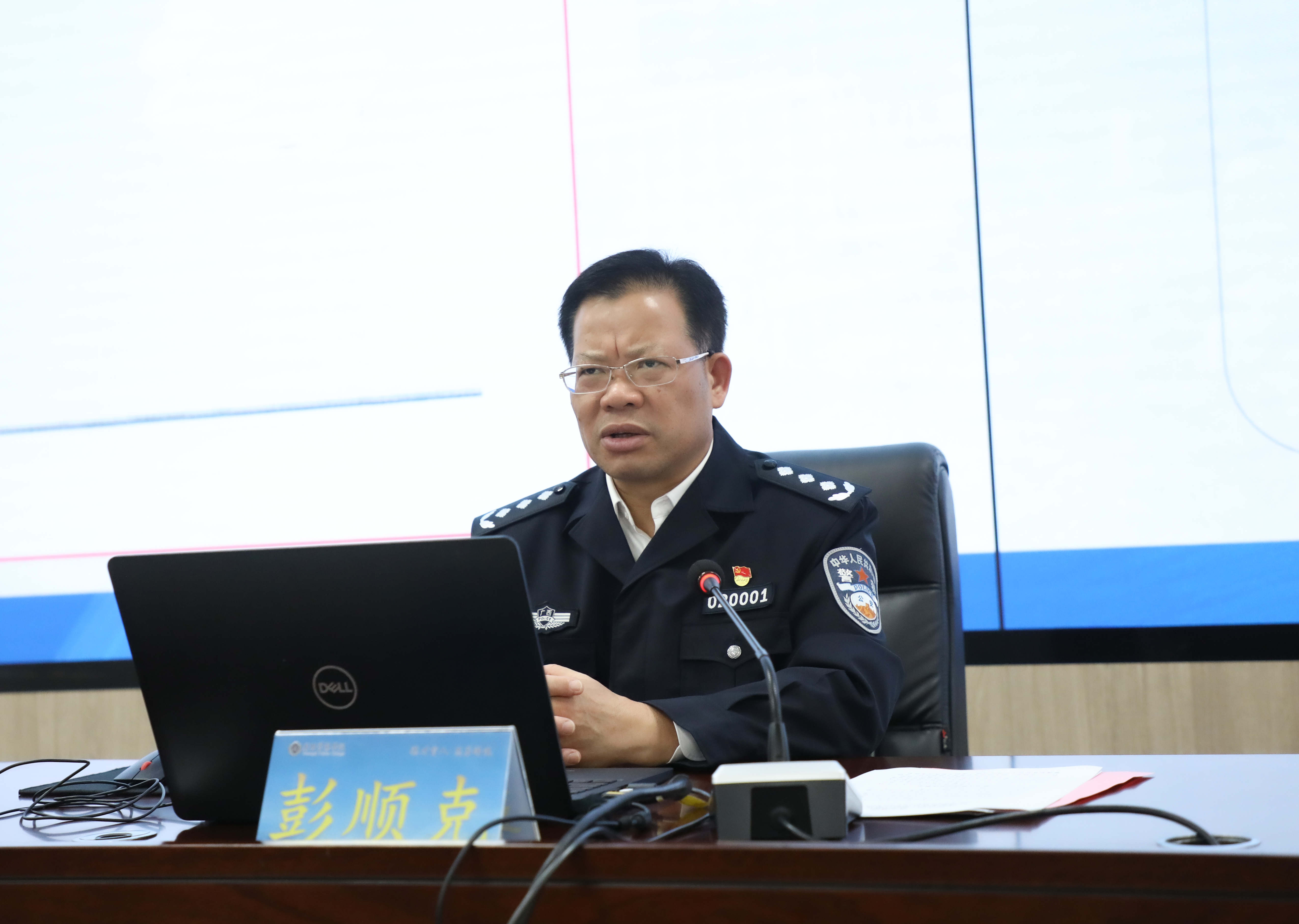 彭顺克从公安部、自治区公安厅、学校各层面对警务化管理的具体要求,学校警务化管理取得的成效,当前落实警务化管理存在的问题及不足,下一步工作要求等4个方面进行深入讲解。
