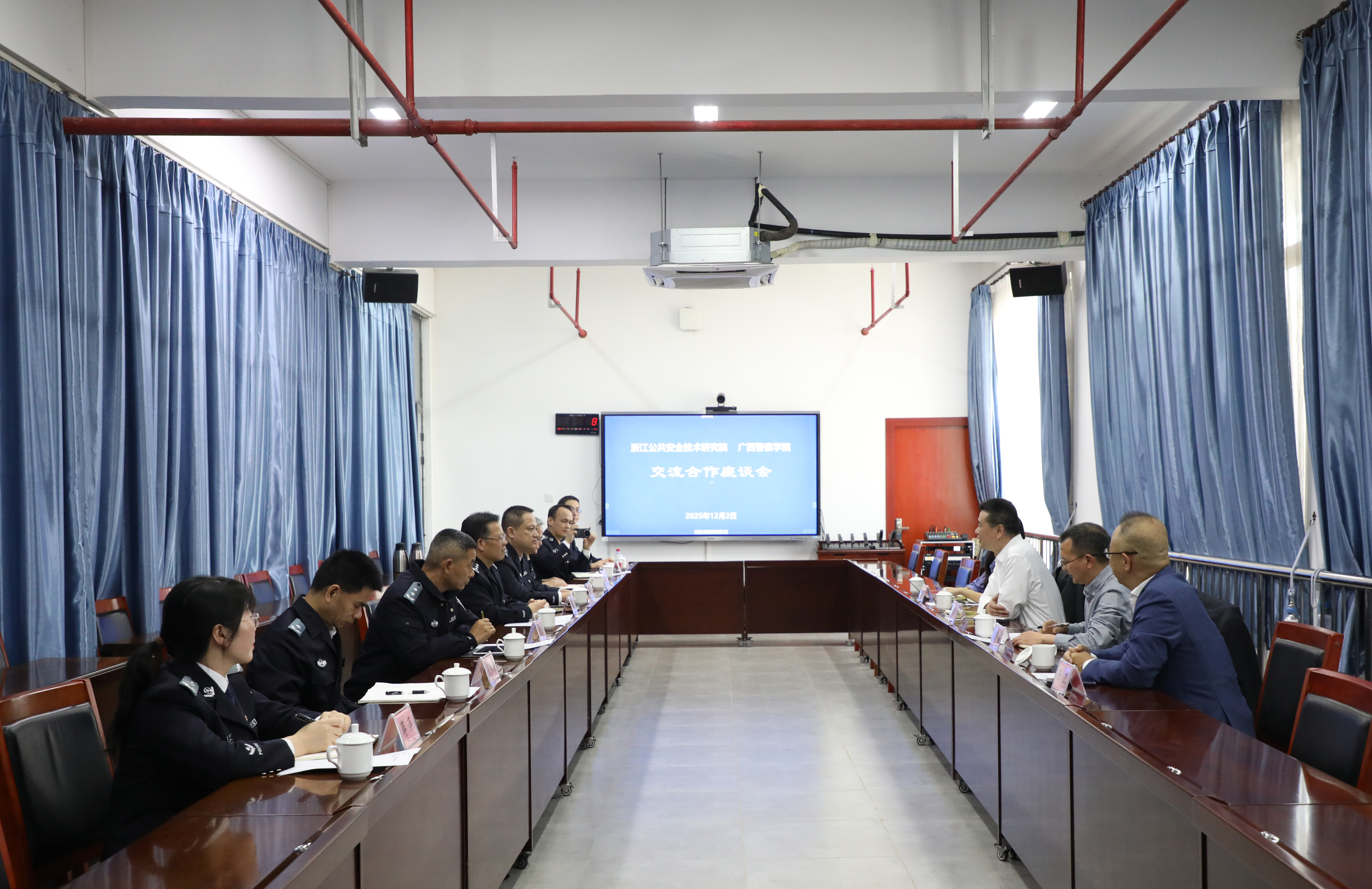 陈港对学校的热情接待与合作诚意表示感谢,并详细介绍了浙江公共安全技术研究院的建设发展历程、重点成果应用情况。他表示,双方合作共建实验室契合公安工作现代化发展需求,前景广阔。期待以此次协议签署为起点,与广西警察学院紧密携手,聚焦人工智能在公共安全领域的关键技术,充分发挥各自优势,共同为提升公共安全治理能力现代化水平贡献力量。