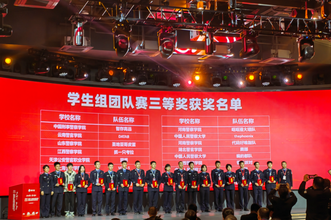决赛场上,队员们团结协作,全力以赴,积极调动知识储备,针对任务问题深入剖析,充分展示了自己的知识储备和专业技能。经过4个小时的激烈角逐,最终我校职工组参赛选手秦振凯老师获得一等奖及警务数据技术能手称号;两支学生组参赛队伍分别获得三等奖、优胜奖;学校获得亚军选手人才培养单位荣誉称号。