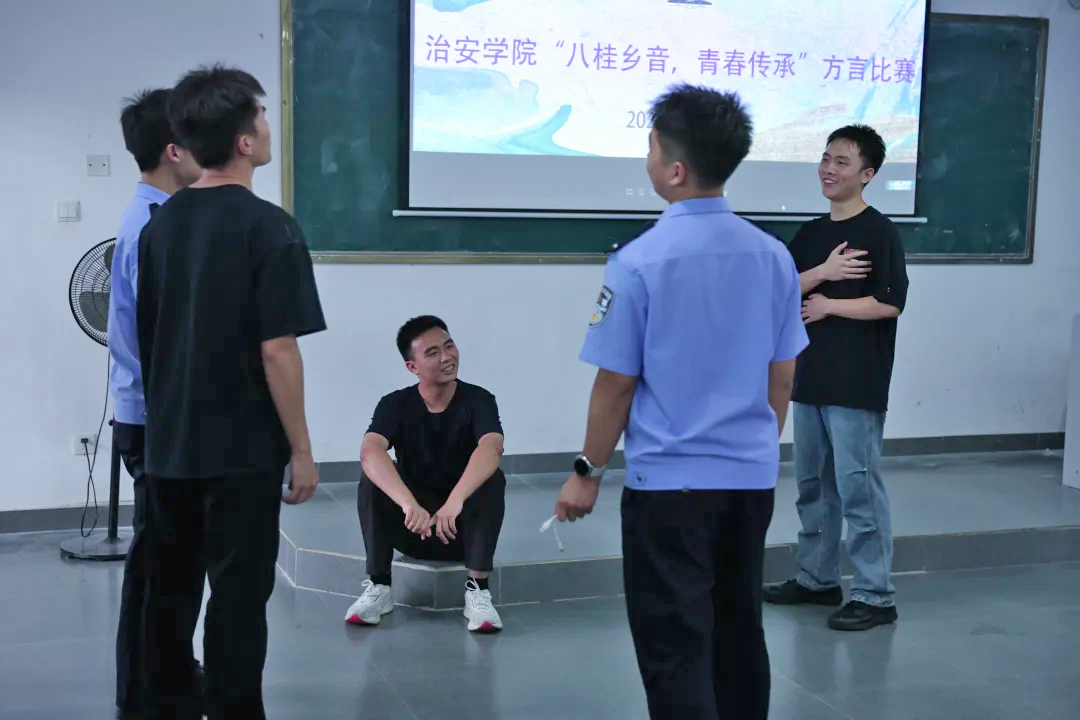 2025 年 5 月 20 日 15 时,广西警察学院治安学院组织开展了以 “八桂乡音 青春传承” 为主题的广西方言比赛。本次比赛设置白话、壮话、桂柳话三个广西地方方言组别,以警务实战场景为背景,要求参赛选手运用方言完成朗诵与即兴表达。